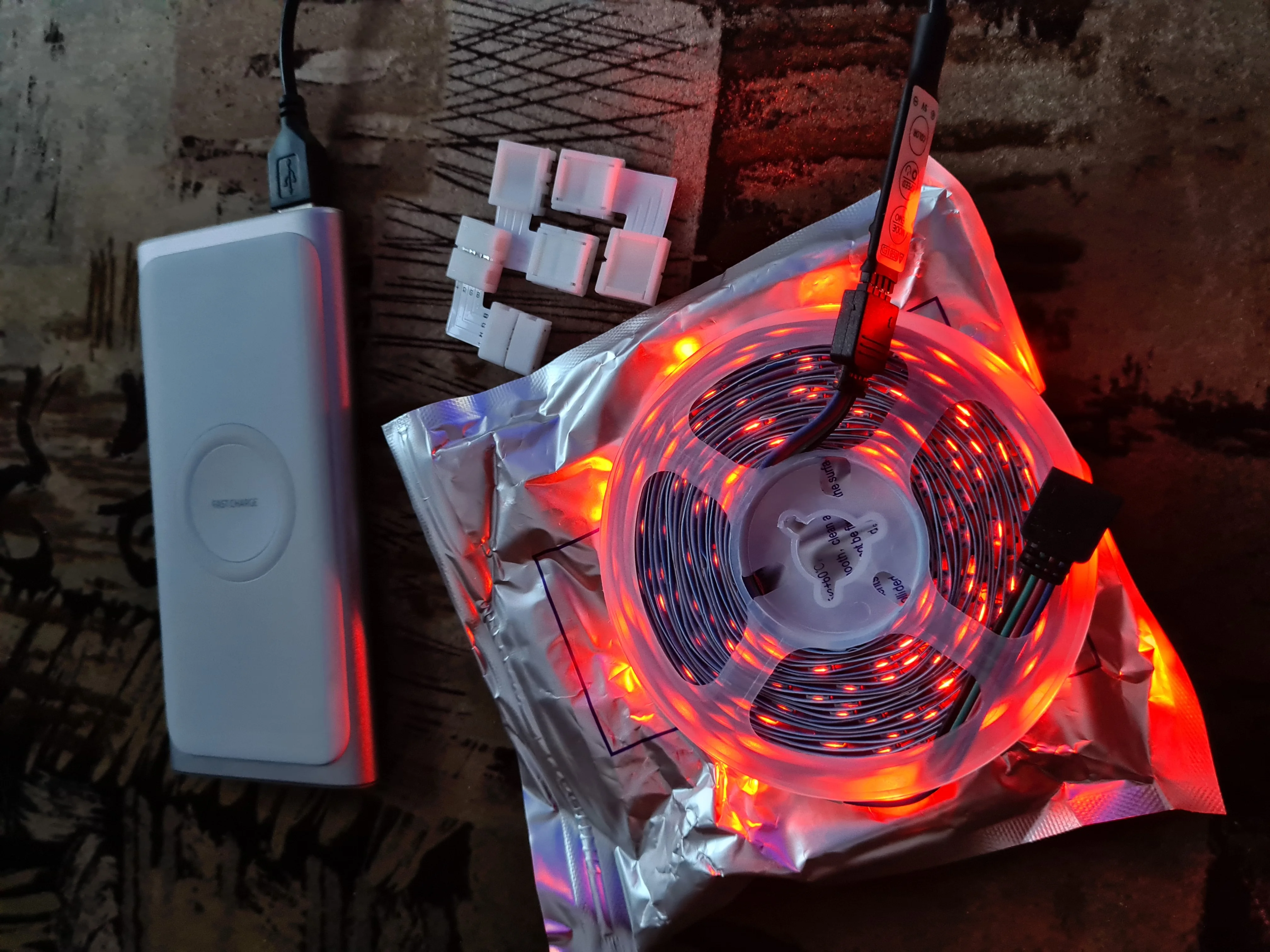 Лента пришла быстро. Собрал, подключил к порту usb ноута, работает. Продавец приложил уголки, спасибо ему.