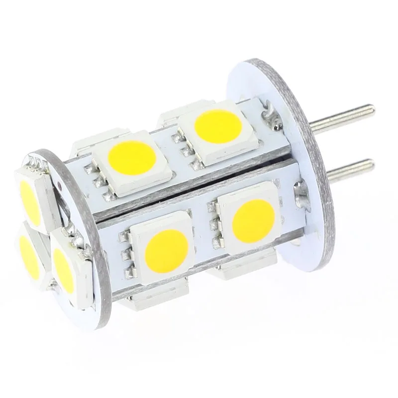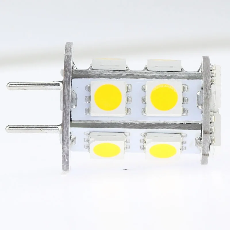 Товар: светодиодный светильник G6.35 G6.35 мощный светодиодный светильник с высокой мощностью, светодиодный s,13 шт. 5050 SMD, светодиодный двухштырьковый светильник, тип башни, 360-градусный луч, 6400k Дневной светильник белый и 3200 теплый белый с G6.35 фитингом, двухполярность, 260-286лм яркость эквивалентна 20-25 Вт галогенная. Применение, включая DC10-30V/AC8-20V marrine, RV и военные транспортные средства. Bi-pins используются на многих светодиодный осветительных приборов, включая светодиодный MR11 и MR16. Длительный срок службы: Белый светодиодный индикатор До 50000 часов (5,7 + лет), сохраните счет за электроэнергию, заменив их Применение Системы солнечной энергии, ветрогенератор, гидрогенератор Используйте дома при надлежащем напряжении постоянного тока Небольшие домашние проекты. Научные проекты. Электронные приложения. RV, яхты, лодки, корабли, автомобили, тележки Укажите Модель: G6.35-13-16A Источник света: 13 шт. 5050 SMD Напряжение: широкий DC10-30V напряжения/AC8-20V Размеры: Φ15,5*22,6 мм, штифт 9 мм, общая длина 31,6 мм Угол луча: 360 ° Тип основания: G6.35 Освещение: 260-286LM Потребляемая мощность: 2,5 Вт Диммируемый, диммер для поверхностного монтажа Цвет: белый, теплый белый, холодный белый Двухполярность