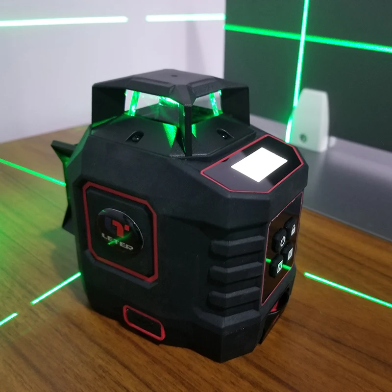Самонивелирующийся зеленый лазерный 3D уровень, 12 линий, лазерный луч с вращением на 360 градусов, водонепроницаемый, с дисплеем