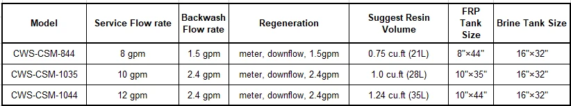 CWS-CSM-844 предлагает расход 8 галлонов на метр и обычно устанавливает фильтр для всего дома после фильтра с активированным углем для снятия твердости в воде.
