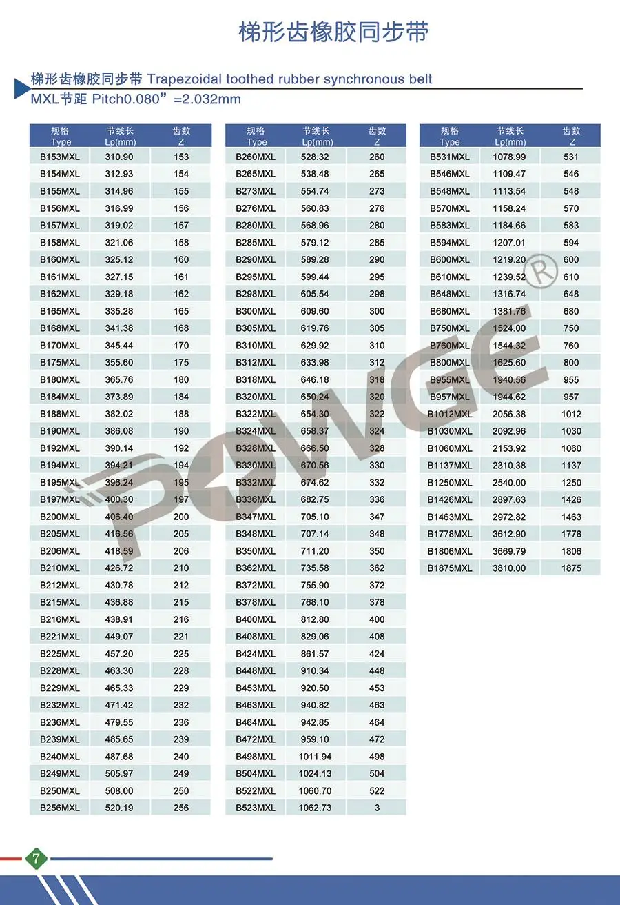 Номер моделиMXL XL XXL L H XH XXH T2.5 T5 T10 T20 AT5 AT10 Customized