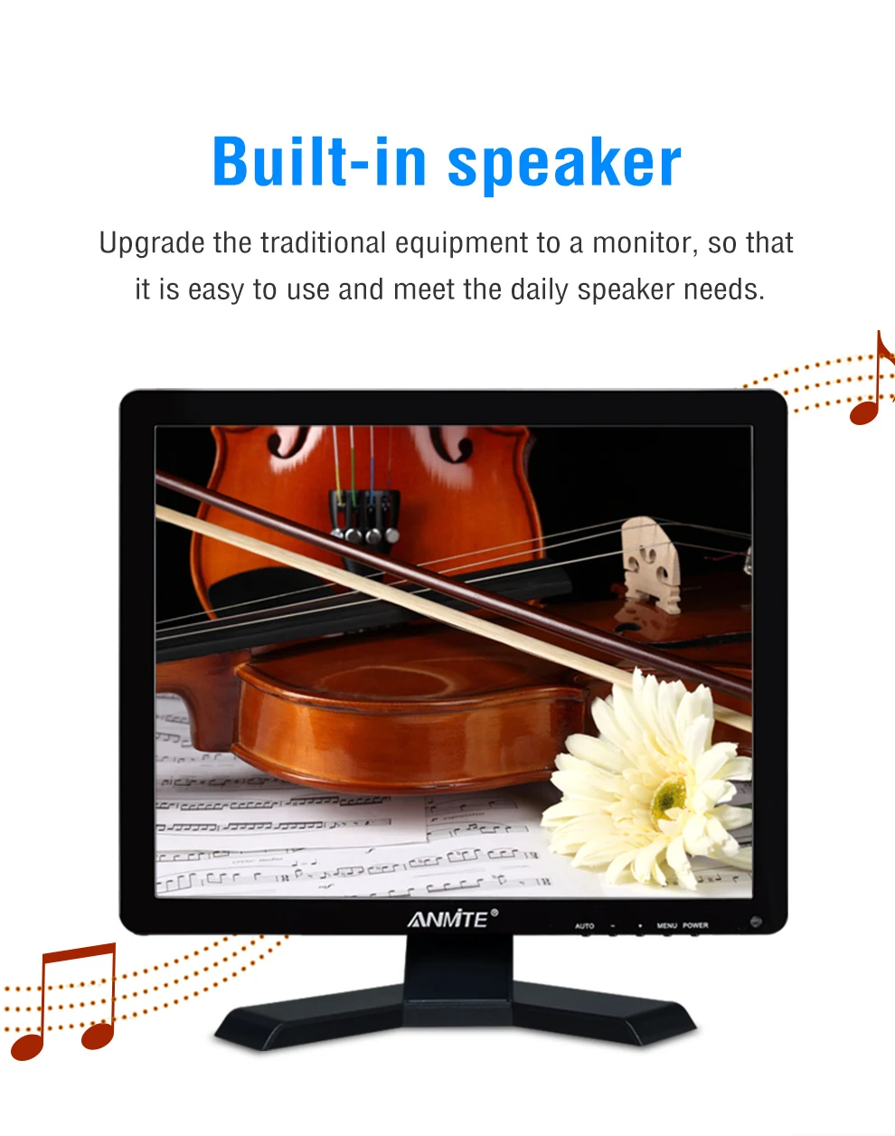Anmite 15-дюймовый светодиодный монитор ПК BNC HDMI VGA со встроенным динамиком