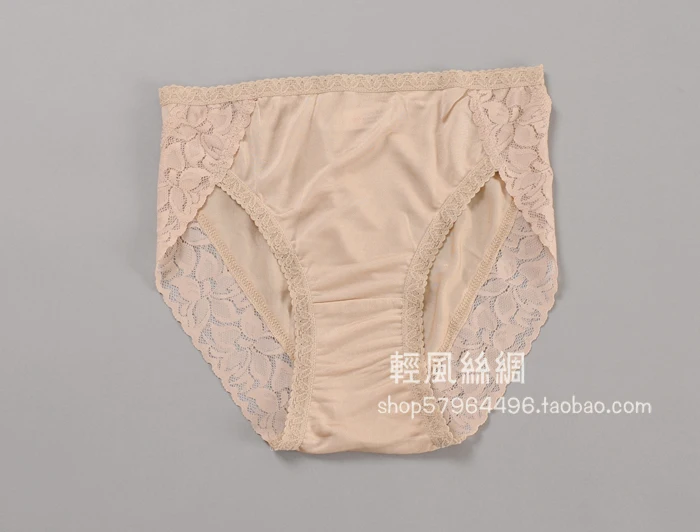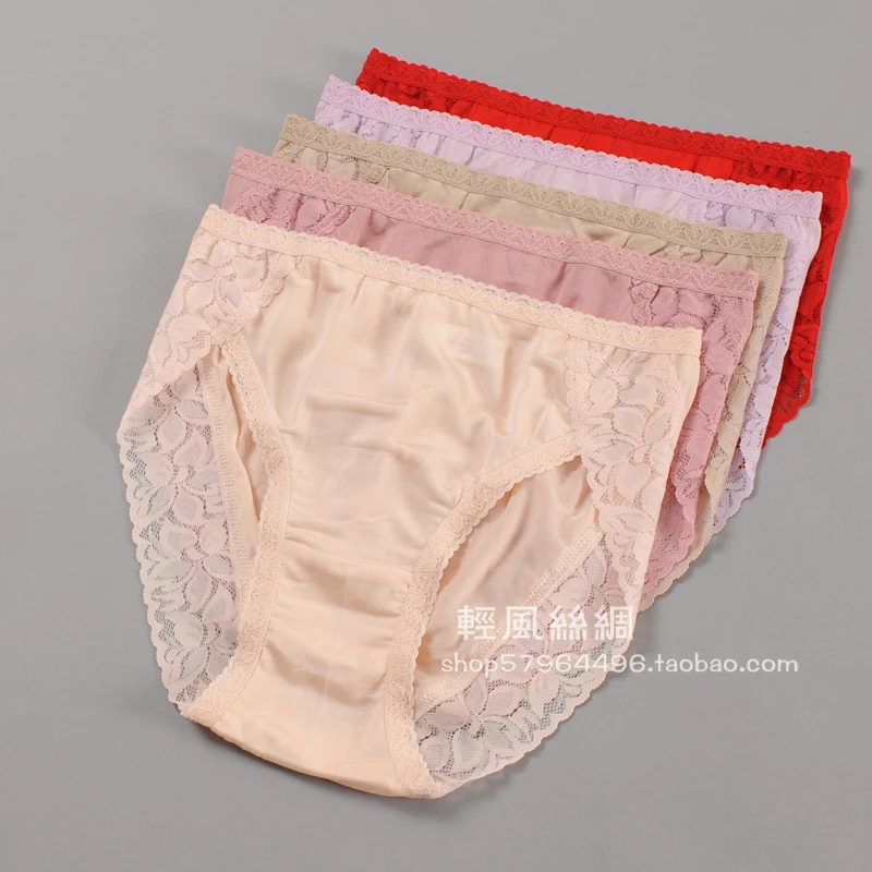 Лидер продаж, женские шелковые трусики, 100% натуральный шелк, кружевные украшения, сексуальные шелковые трикотажные Трусы со средней посадкой