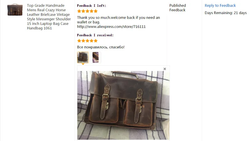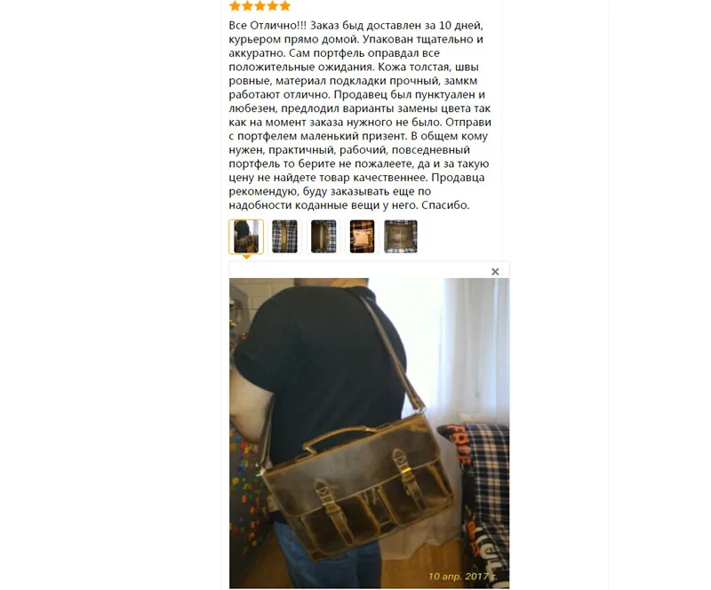 Сумка крутая, кожа толстая, пахнет нормально. в подарок продаван положил кошелек.Он тоже достоиный. Были проблемы на почте России (потеряли посылку), нужна была некоторая информация от продавана.Продавец меня игнорировал.
