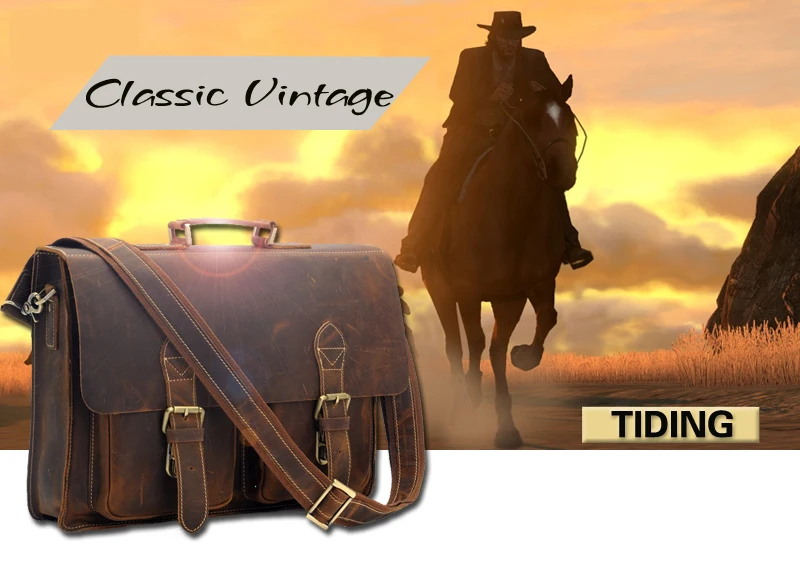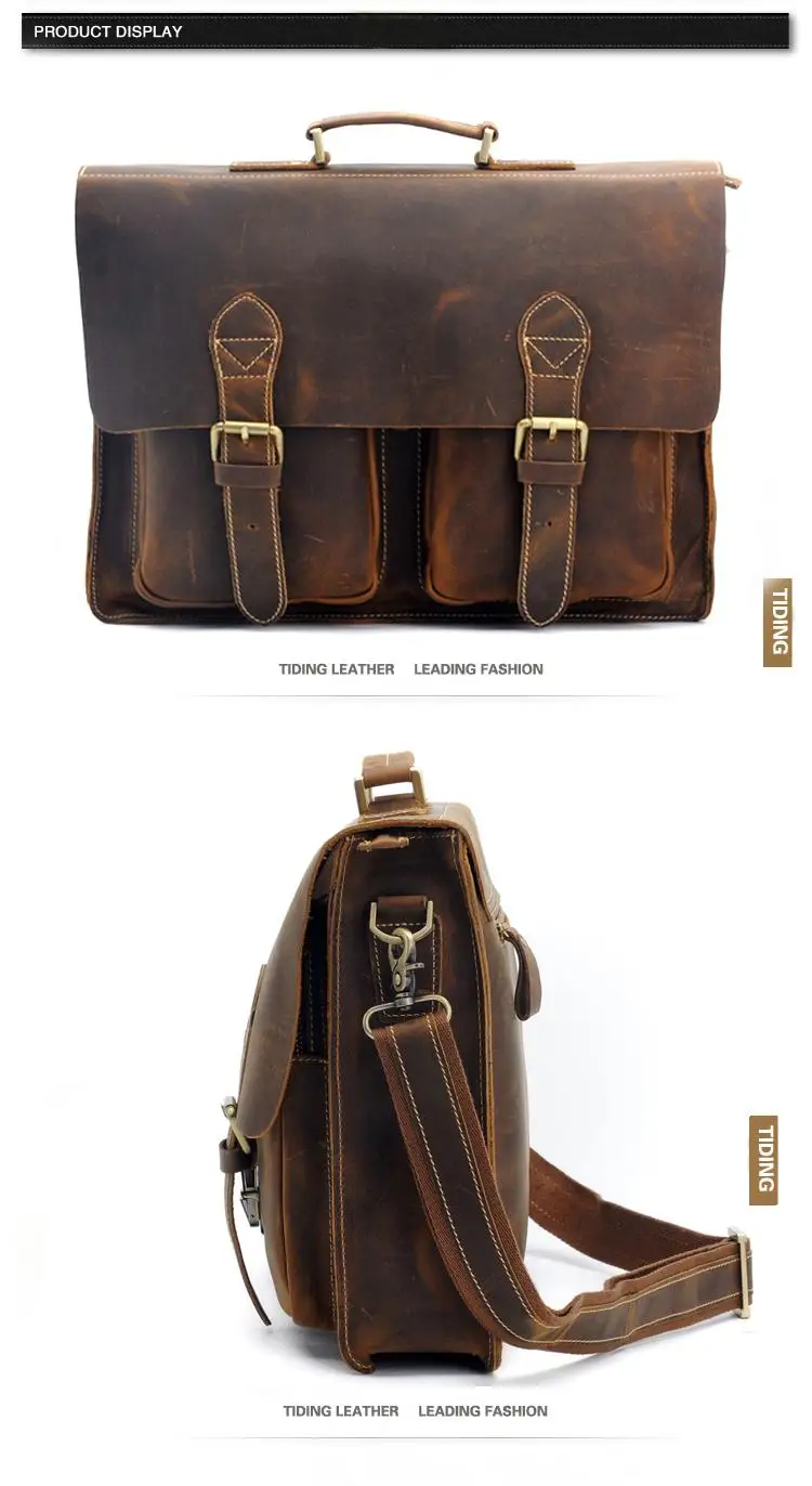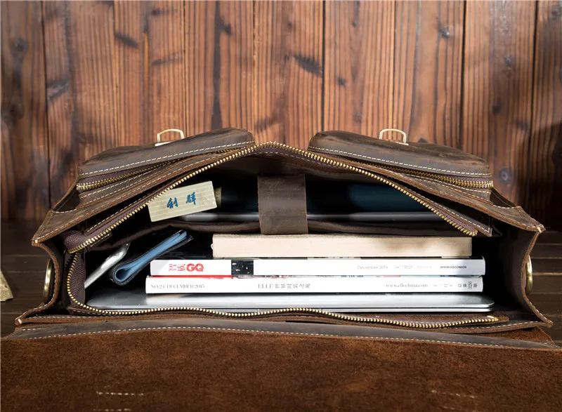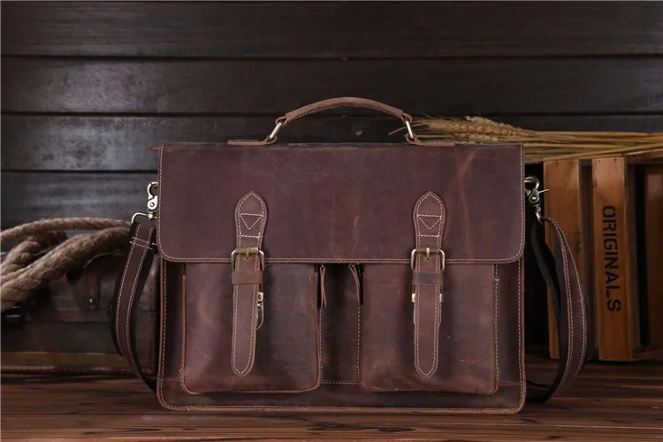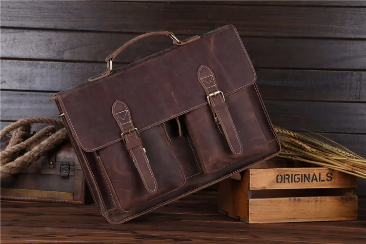 Мужской винтажный портфель из натуральной кожи Crazy Horse, наплечный портфель, сумка для ноутбука, сумка, подарок на день отца, 1061