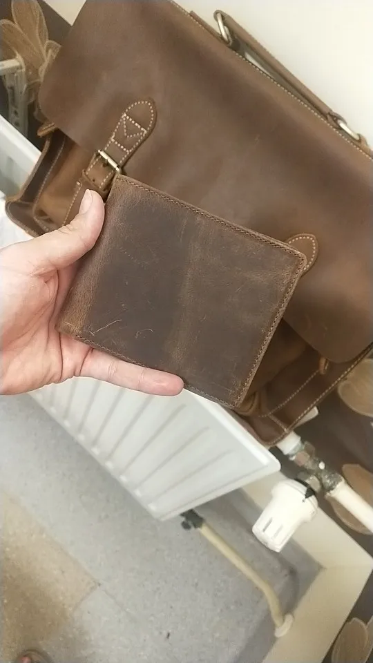 Первое впечатление хорошее. Хотя кожа по виду немного отличается от фотографии. Где-то больше похоже на замшу. качество внушает доверие. Вдобавок получил кошелёк в подарок.