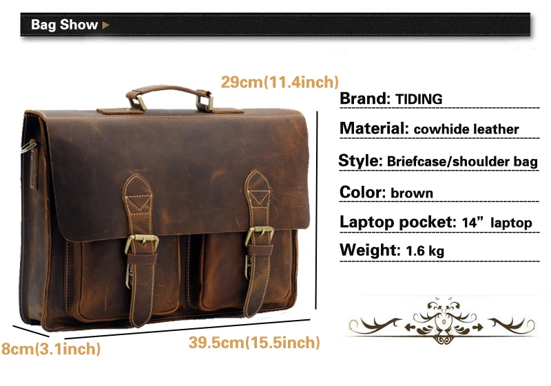 В наших широтах подобного типа портфель не нашёл, заказал здесь. Оказался вполне добротный. Достаточно вместительный. Мак 13” в отделение для ноута залез как влитой, в основной отдел наверно и 15” залезет. Есть отделения для всякой мелочи (кошелёк, ежедневник, ручки и т.д.). Качество кожи приличное, правда можно придраться к швам. Фурнитура хорошая. Цена - качество оптимальное для данного изделия. До Москвы из Китая доехала до двери за 2 недели! Портфелем очень доволен, рекомендую!