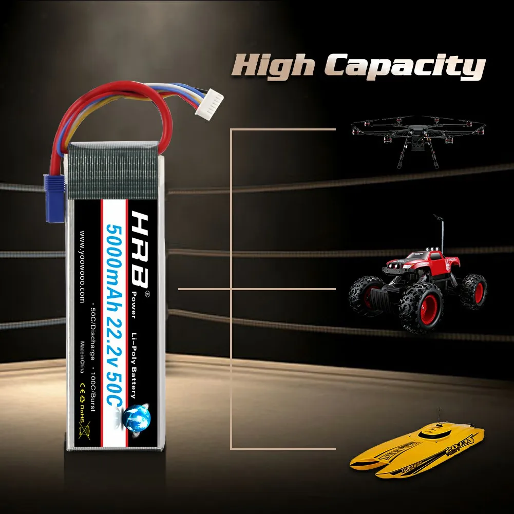 Литий-полимерный аккумулятор HRB 6S, 2 шт., 22,2 в, 5000 мА ч, 50C с разъемом EC5 XT90 для квадрокоптера SAB 700, 800, вертолета, дрона, выравнивание 7,2, Як 54