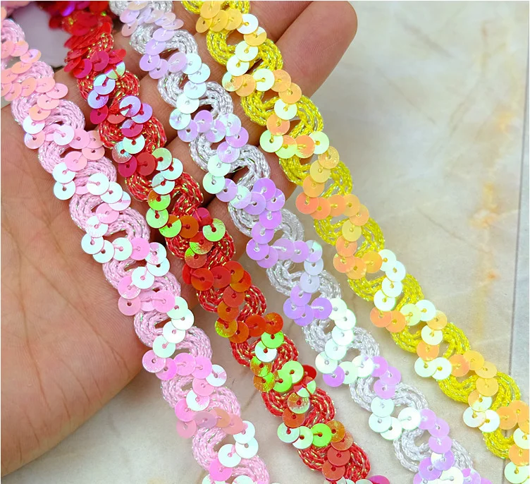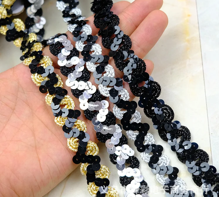 12 ярдов, вышитые кружевные ленты с блестками, костюмы для косплея с аппликацией, Обрезанные ленты, кружевные аксессуары для одежды, Ширина 1,5 см