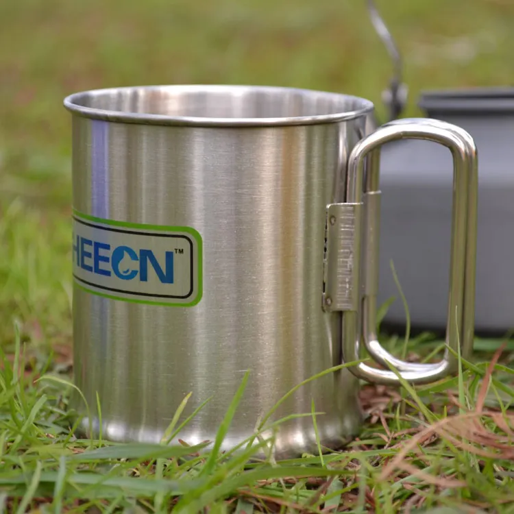 Бесплатная доставка Heecn уличная чашка из нержавеющей стали Складная Ручка чашка одноярусная кофейная чашка 300 мл