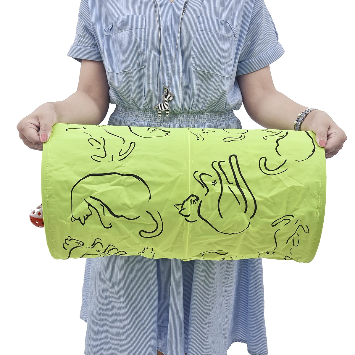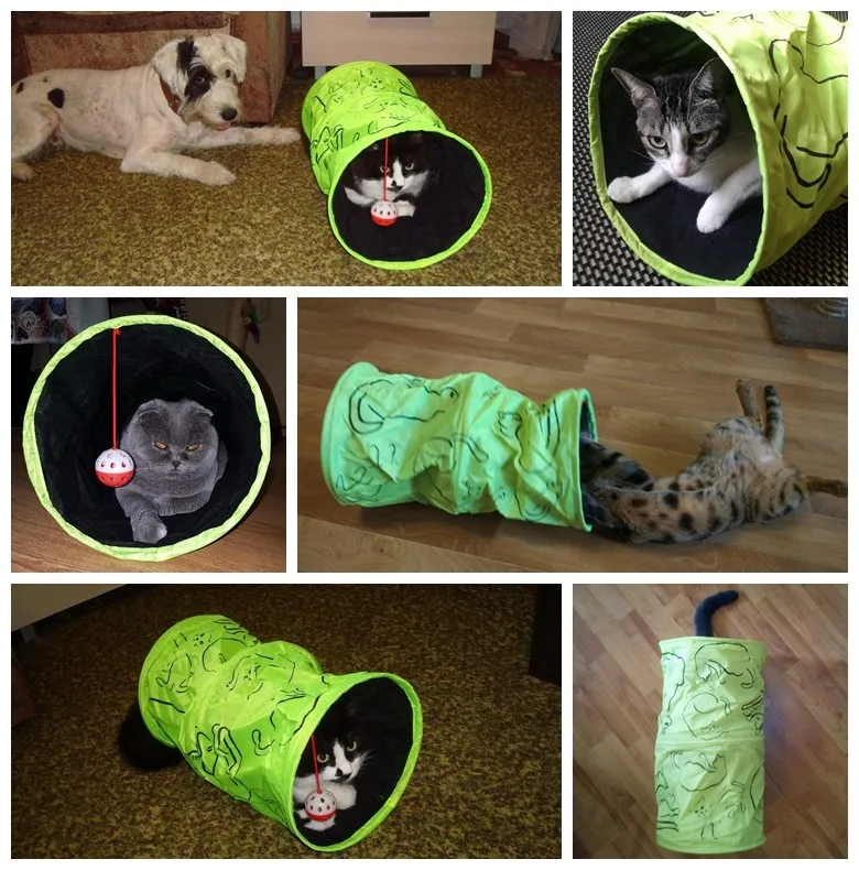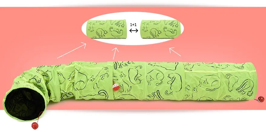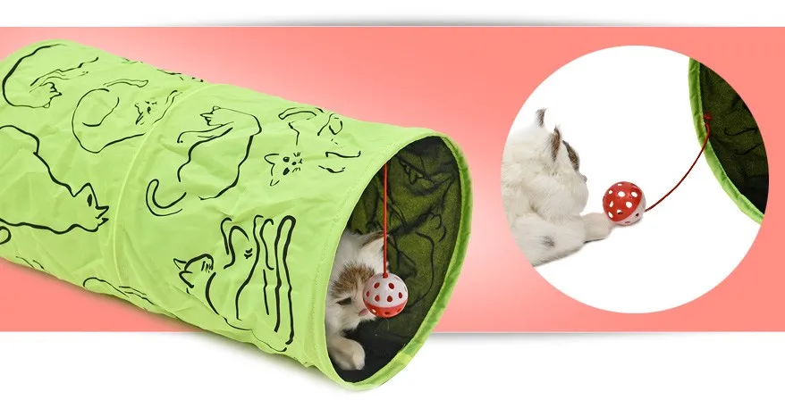 Pet туннель Cat Отпечатано зеленый прекрасный извивающихся котенок туннель игрушка с мячом играть забавная игрушка туннель оптом Игрушки для котов кролик играть туннель