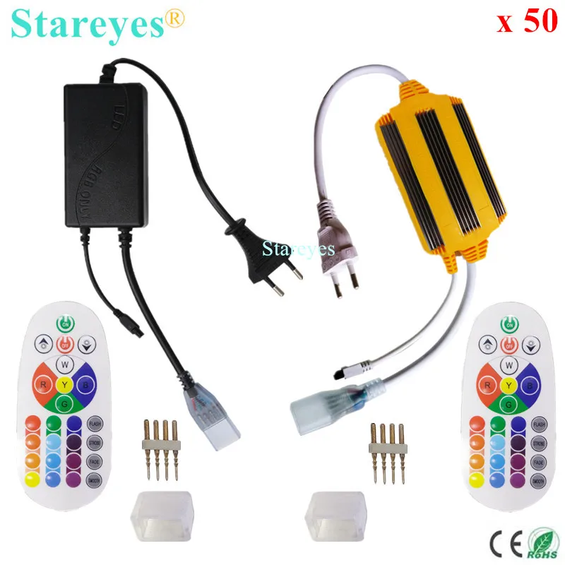 Лента RGB с пультом дистанционного управления, 50 шт., 5050 В переменного тока, 25 кнопок, 3528, 8 мм, 10 мм