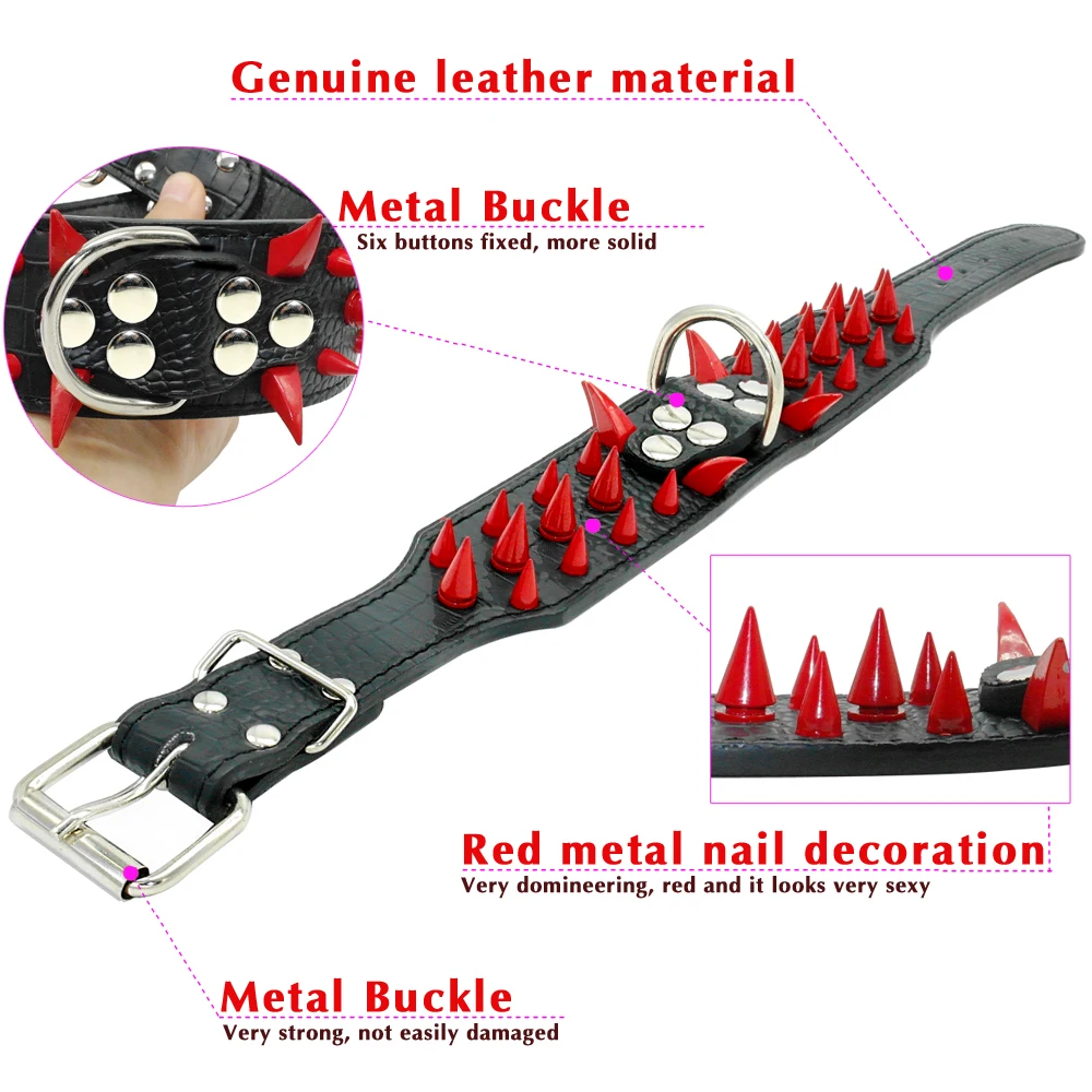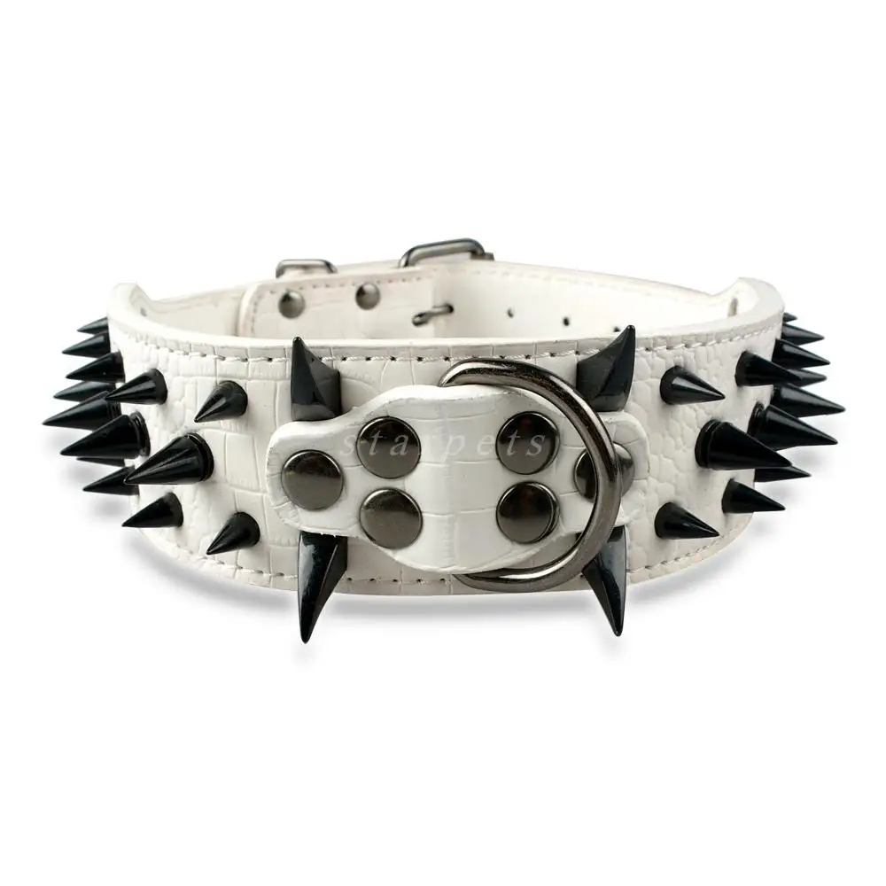 Кожаный ошейник с шипами шириной 2 дюйма, Большой собачий ошейник питбуль бульдог, регулируемый для средних и больших собак, боксеры S M L XL