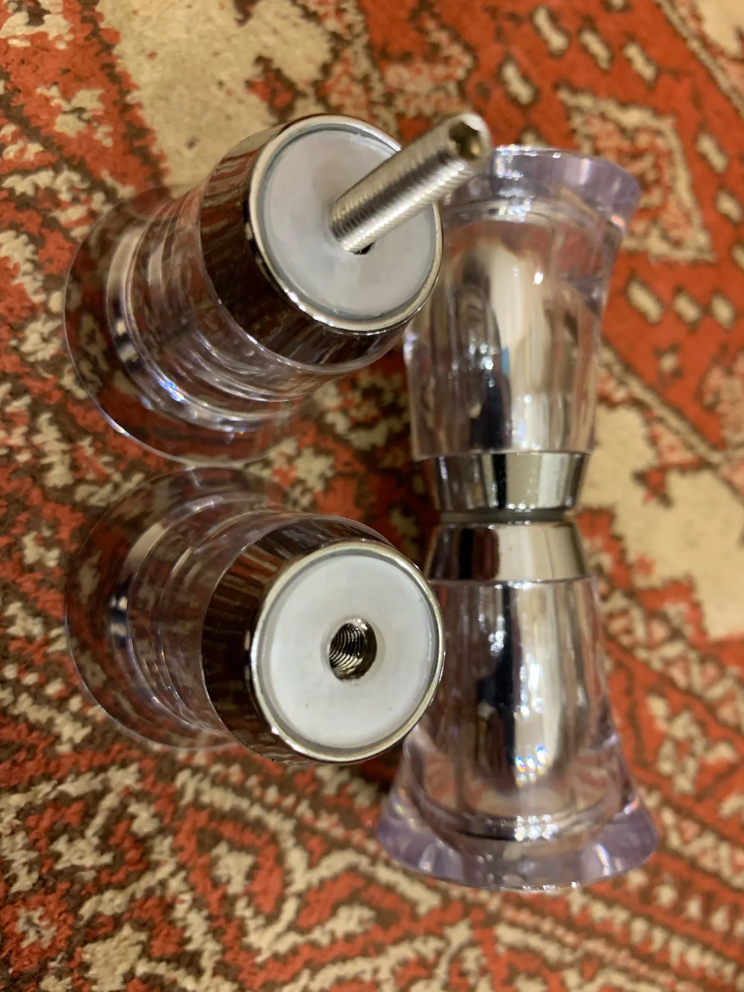 Прозрачная ручка для замены из акрила и нержавеющей стали. Конической формы.