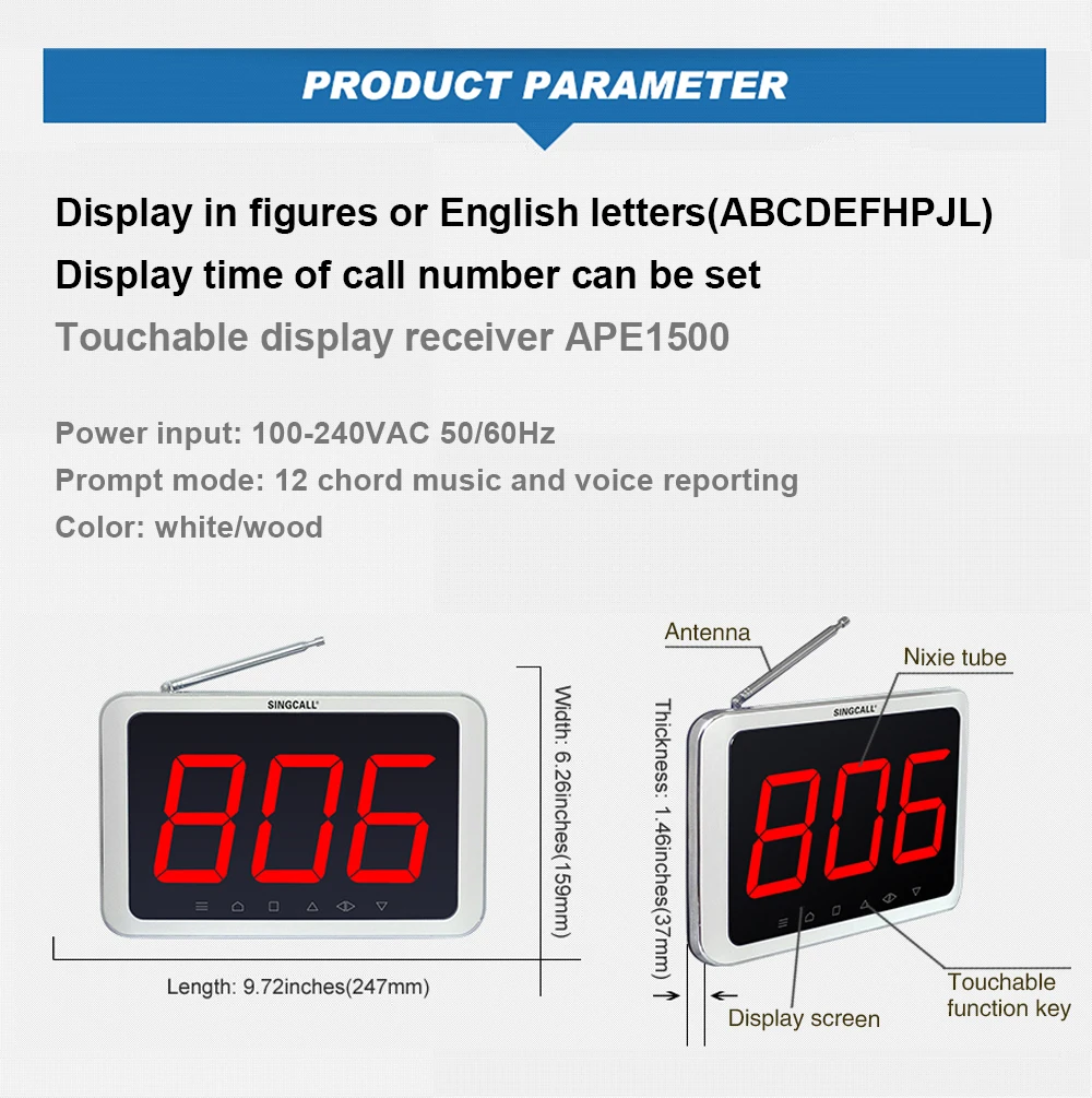 Вы когда-нибудь в ресторане, здесь вы готовы принять ваш заказ, но вы не можете найти в любом месте официанта или без ожидания? Система вызова беспроводного оператора или сервера может решить вашу проблему.Беспроводная Жидкостная система широко используется в области обслуживания. Это фиксированный хост для официантов, чтобы получить сообщение о заказе от гостя. Когда гость нуждается в какой услуге, он или она просто нажмите кнопку рядом с ним, его или ее номер стола будет отображаться в музыки или смотреть пейджер предупреждающий голос. Поэтому официант может обеспечить очень своевременное обслуживание.