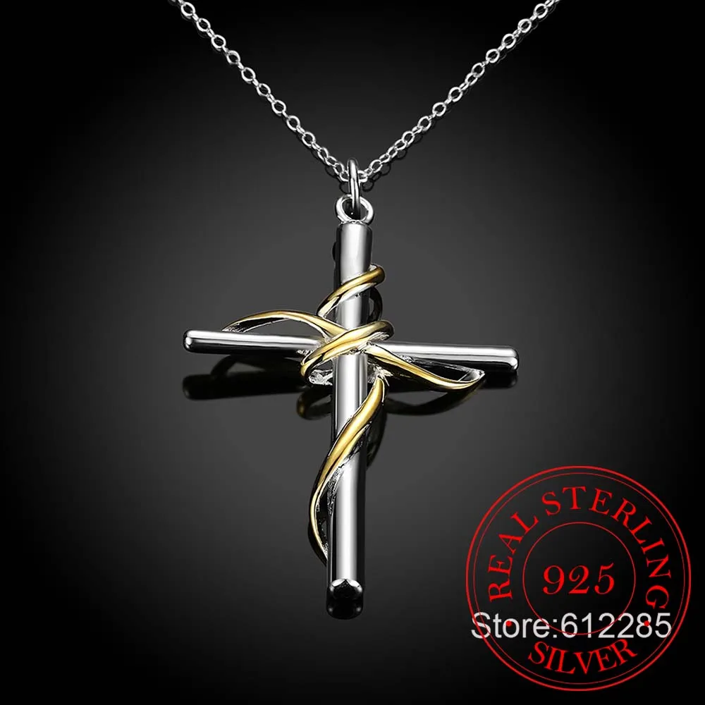 Модное ожерелье с кулоном в виде креста, ожерелья с кулоном из стерлингового серебра 925 пробы для женщин и мужчин, 2020, свадебные и вечерние ювелирные изделия