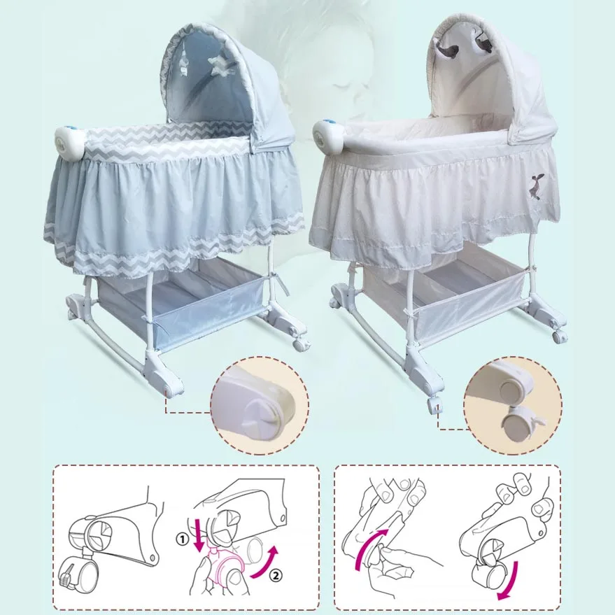 Люлька для новорожденных, детская кроватка принцессы с 4 универсальными колесами, детская кроватка-качалка может толкать куда угодно, музыкальная детская кроватка