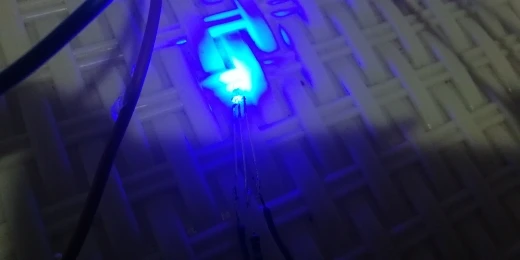 Голубой нормально, а красный излучает как то с боку и рассеянно.