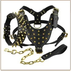 Кожаная шлейка для собак с шипами, комплект из шлейки и поводка с цепочкой для собак средних и крупных пород, питбуль мастиф