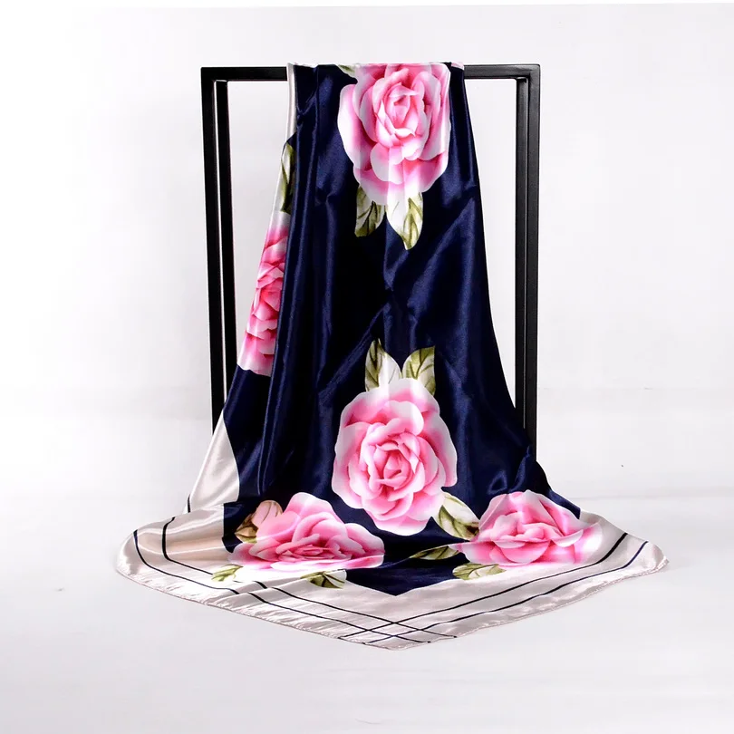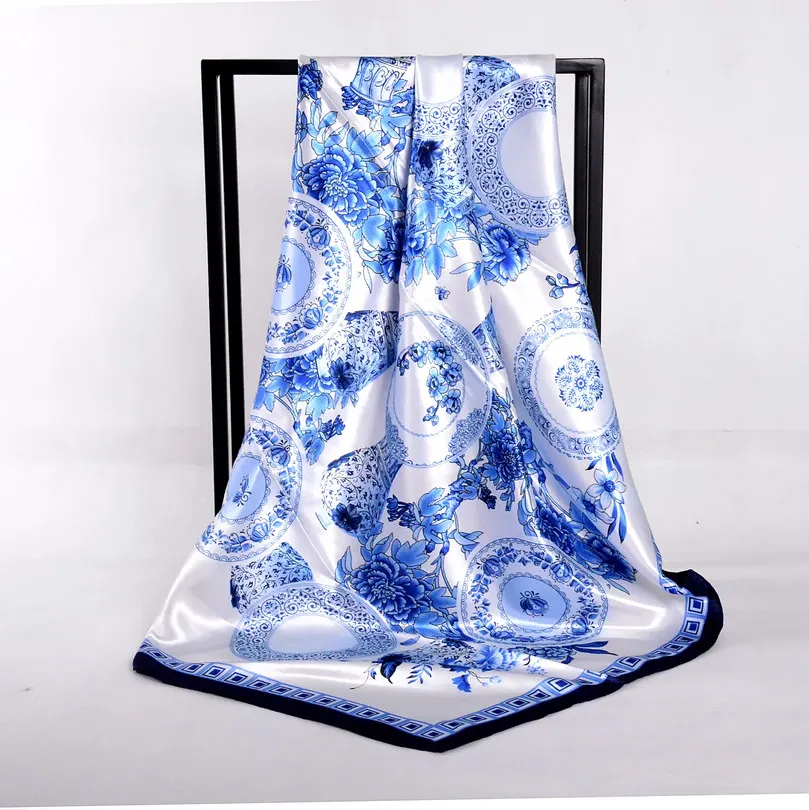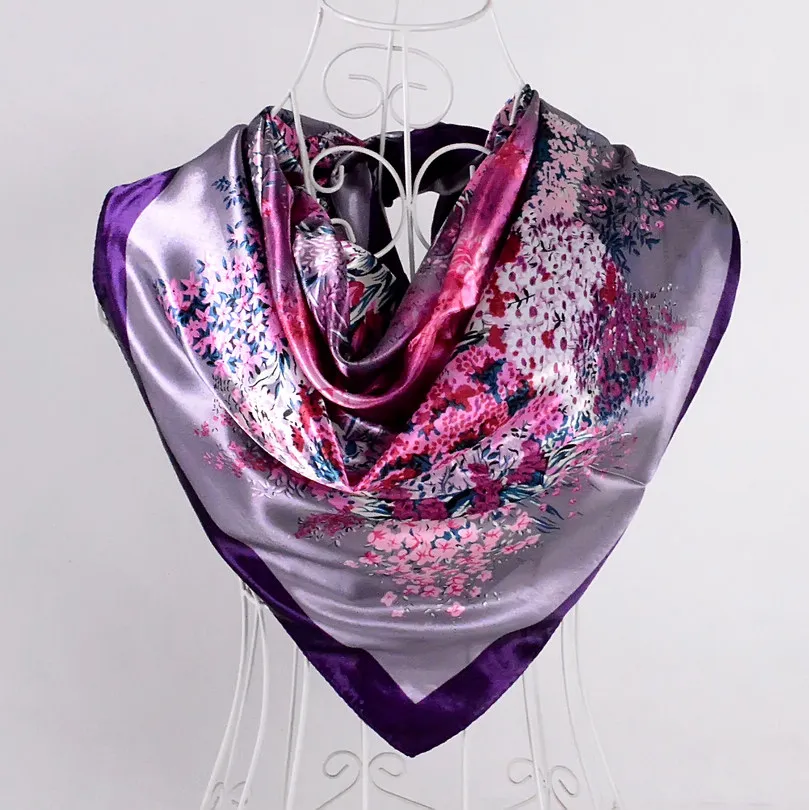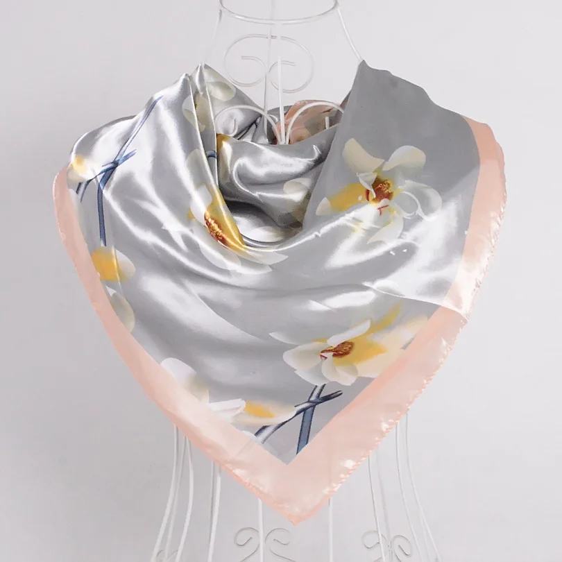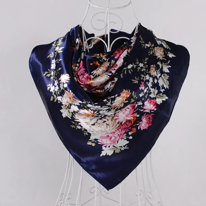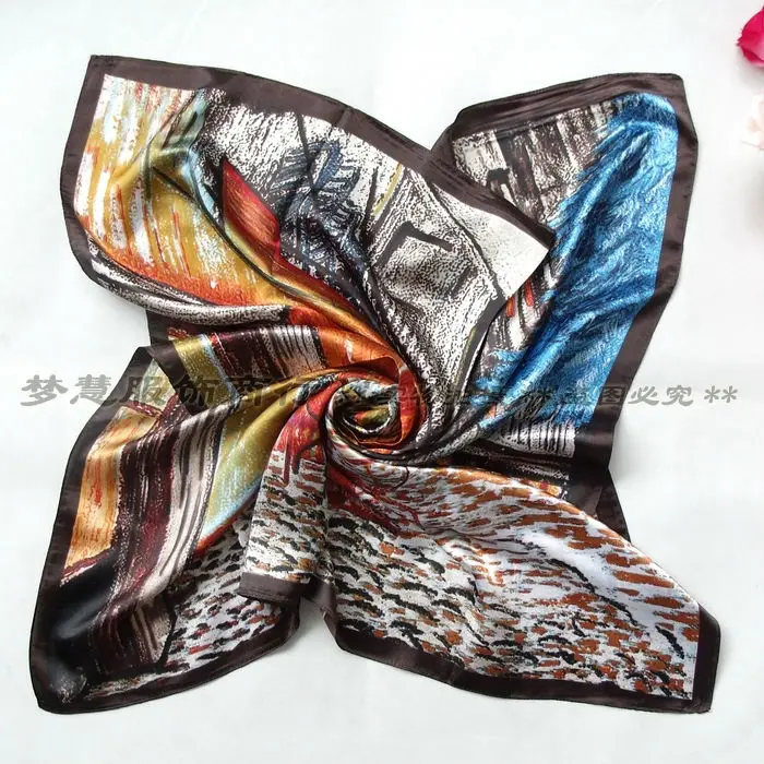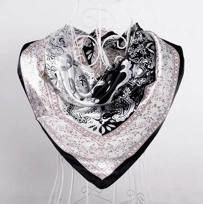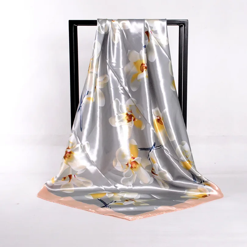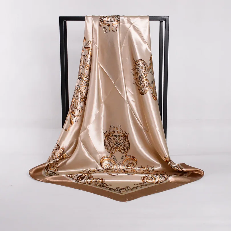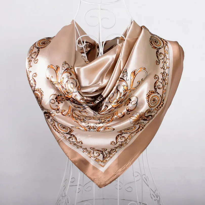 Весенне-осенние женские шелковые квадратный шарф, платок в китайском стиле, Полиэстеровые атласные хиджабы, женские шелковые шарфы кофейного цвета, 90*90 см