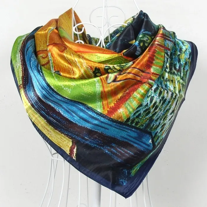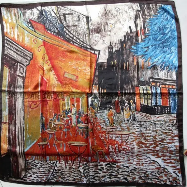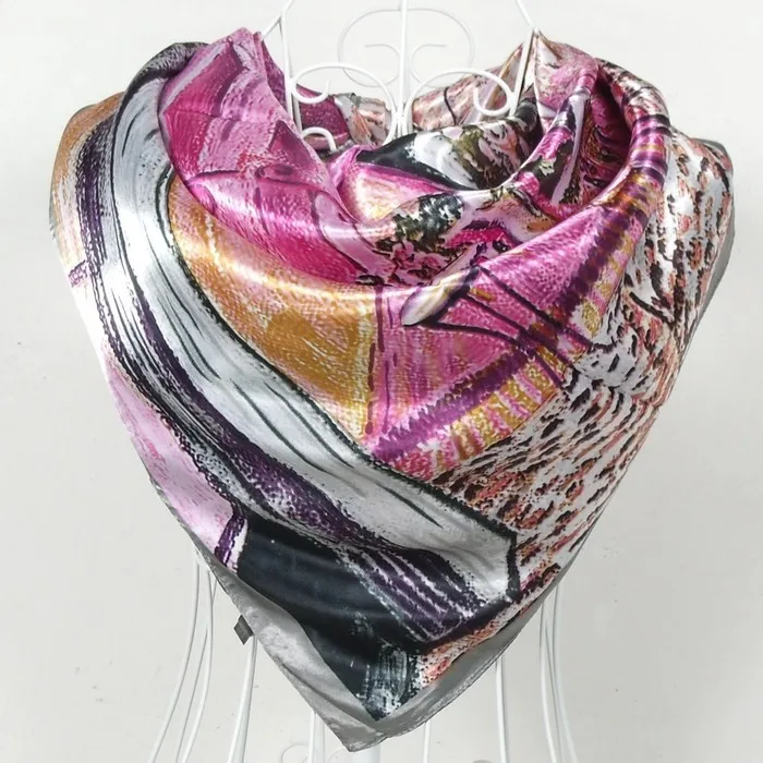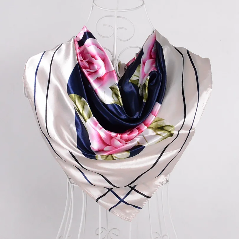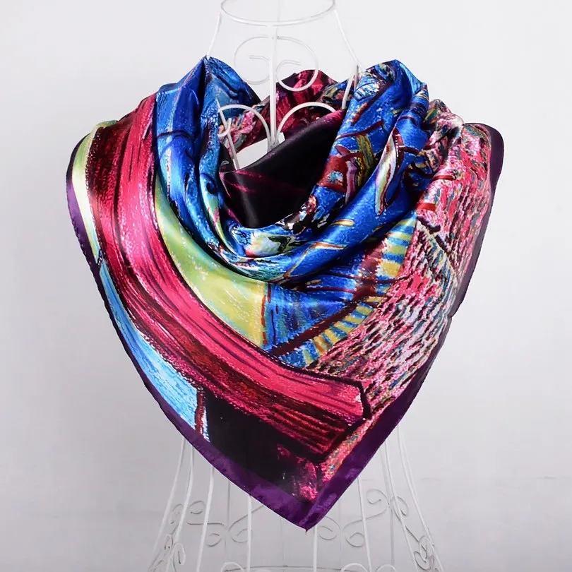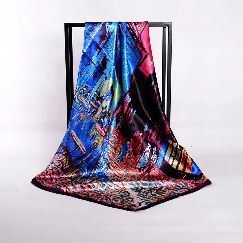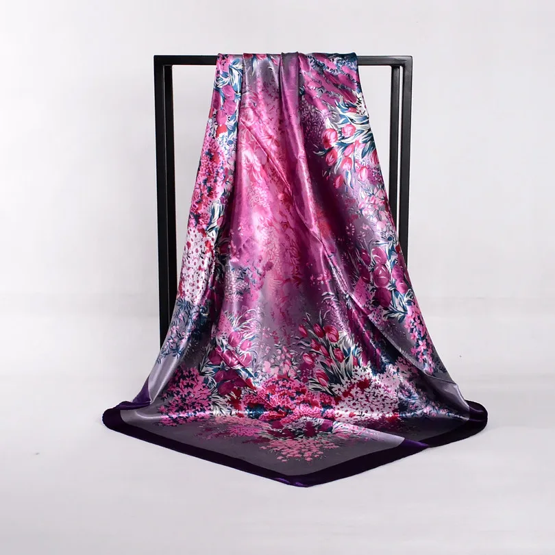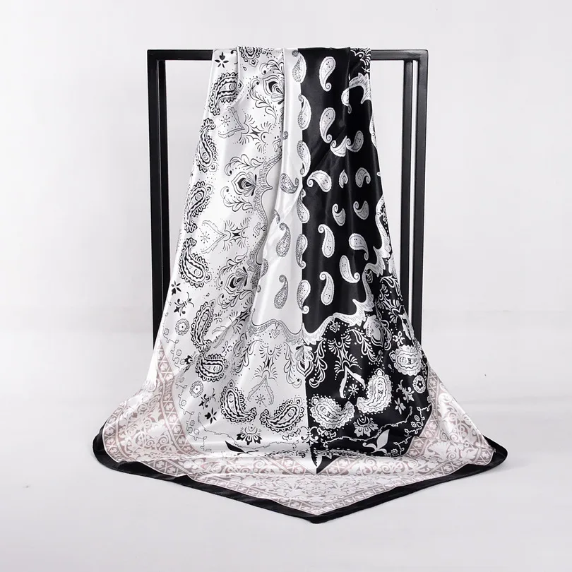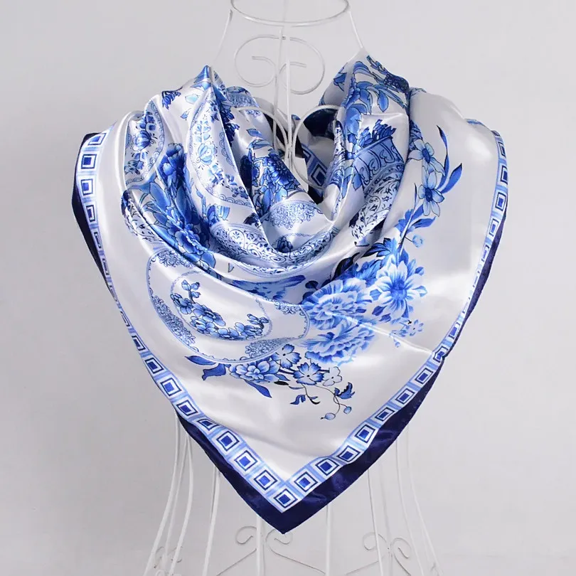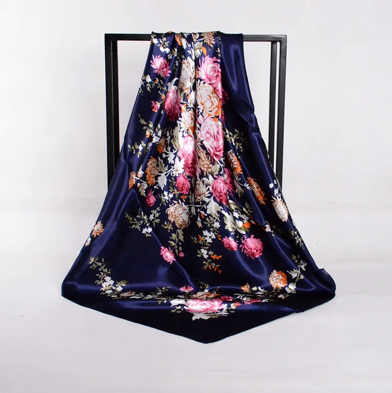Весенне-осенние женские шелковые квадратный шарф, платок в китайском стиле, Полиэстеровые атласные хиджабы, женские шелковые шарфы кофейного цвета, 90*90 см