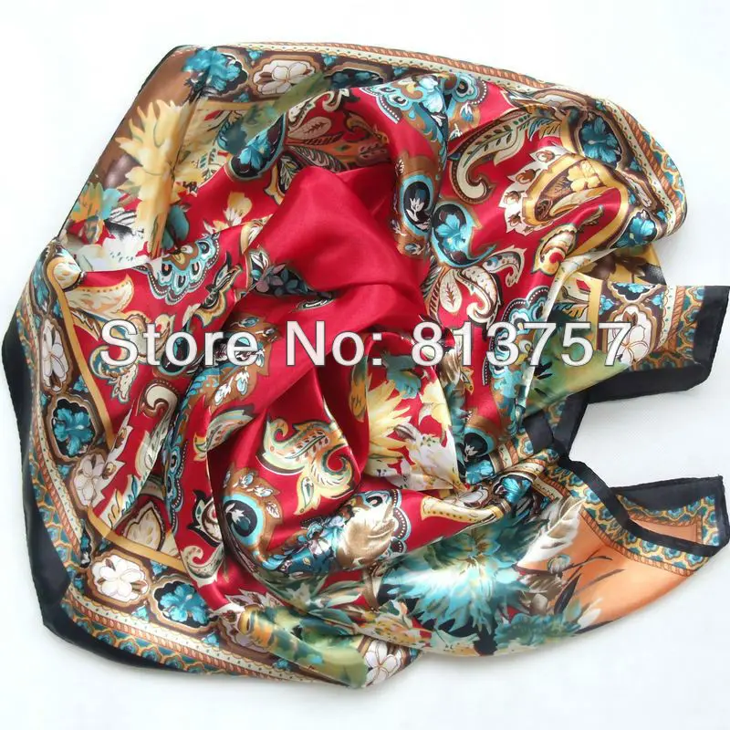 Новый стиль, Женский атласный красный большой квадратный шелковый шарф с принтом, Лидер продаж, Женский кофейный шелковый шарф, хиджаб для лета, осени 90*90 см