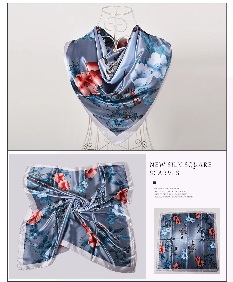 Красный шёлковый шарф женский шарф, китайский стиль, атласный большой квадратный шарф с принтом, Женский брендовый шелковый шарф из искусственного шелка, хиджаб, модная шаль 90*90 см