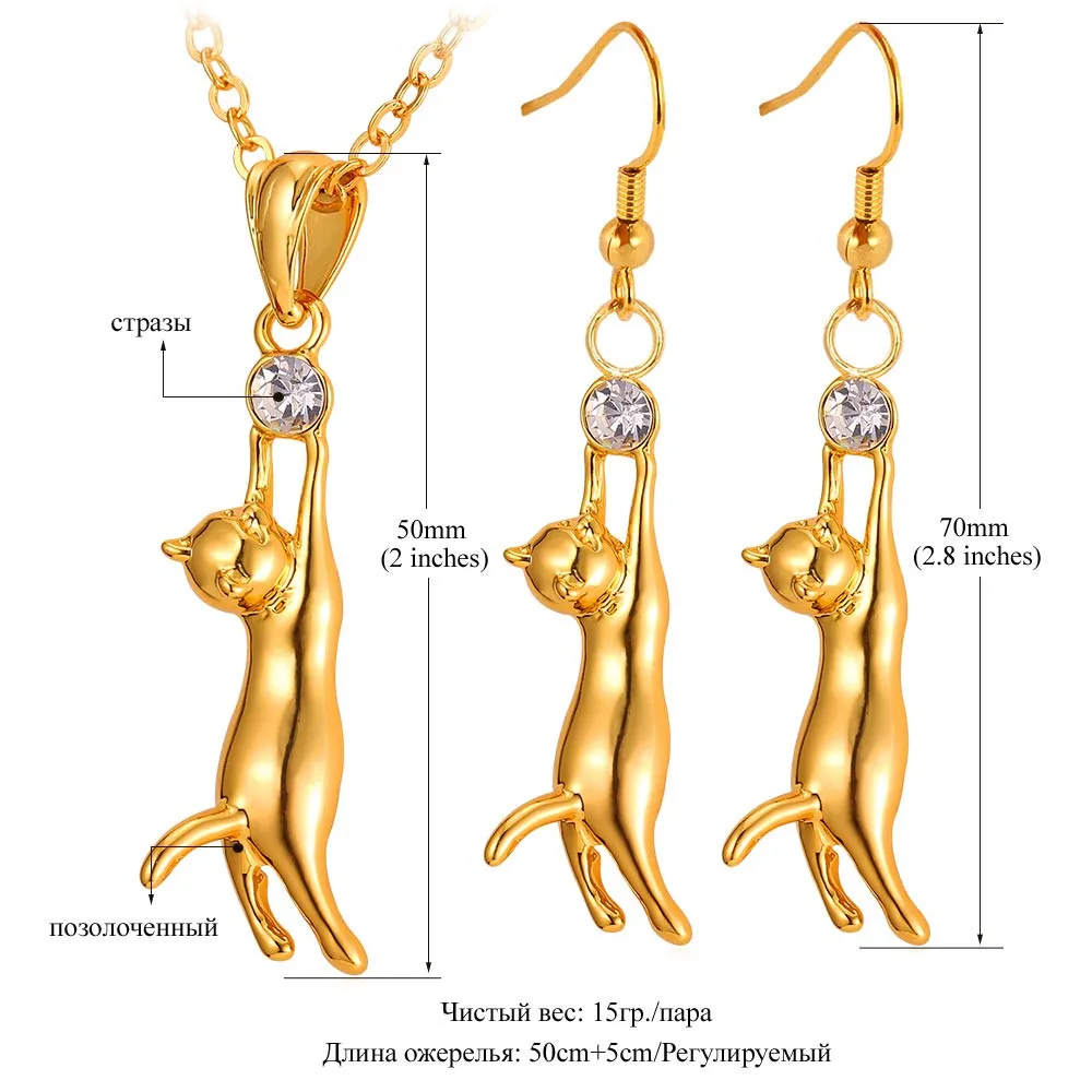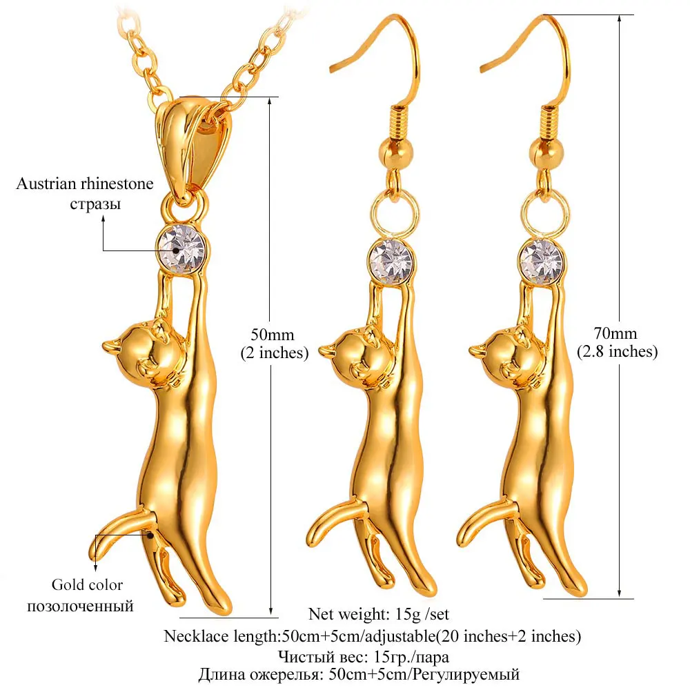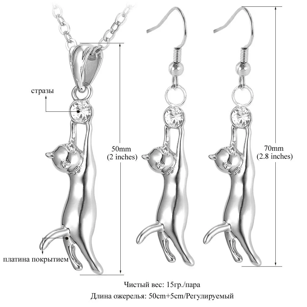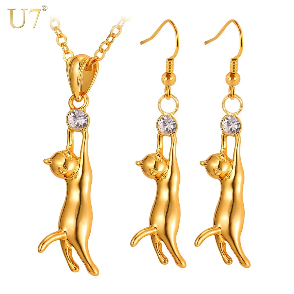 U7 Серебряный Кот Кулон Ожерелье Серьги Животные Ювелирные Наборы Для Женщин Золото Серебро Цвет Мода Кошка Подвески и Сережки Подарок S3103