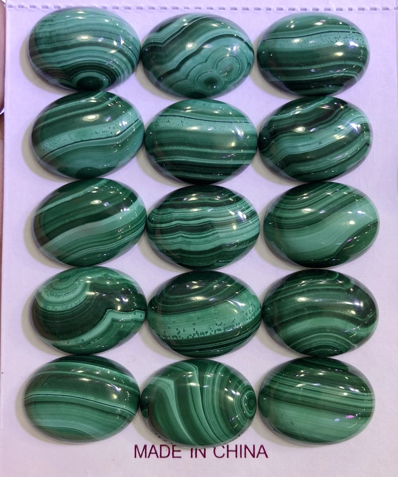 Ювелирные Кабошоны из натурального малахита 15x20 мм, 2 шт.лот