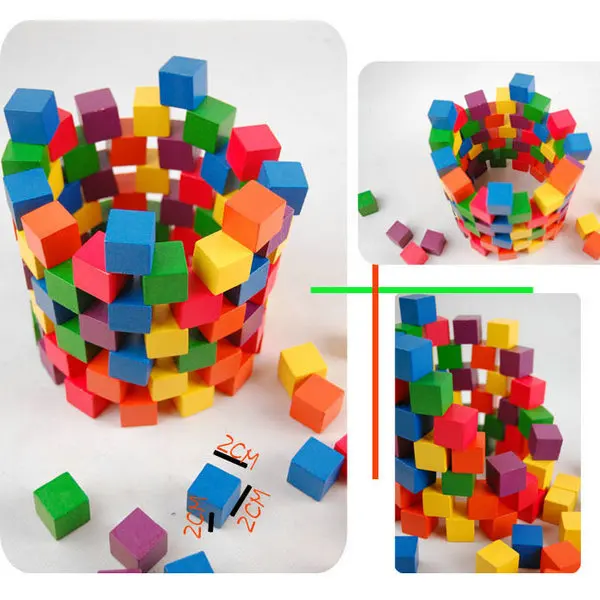 100 шт.лот. 2 см деревянный куб, цветной деревянный блок, деревянные кубики строительные блоки, Ранние развивающие игрушки. Подарок на день рождения. Бесплатная доставка