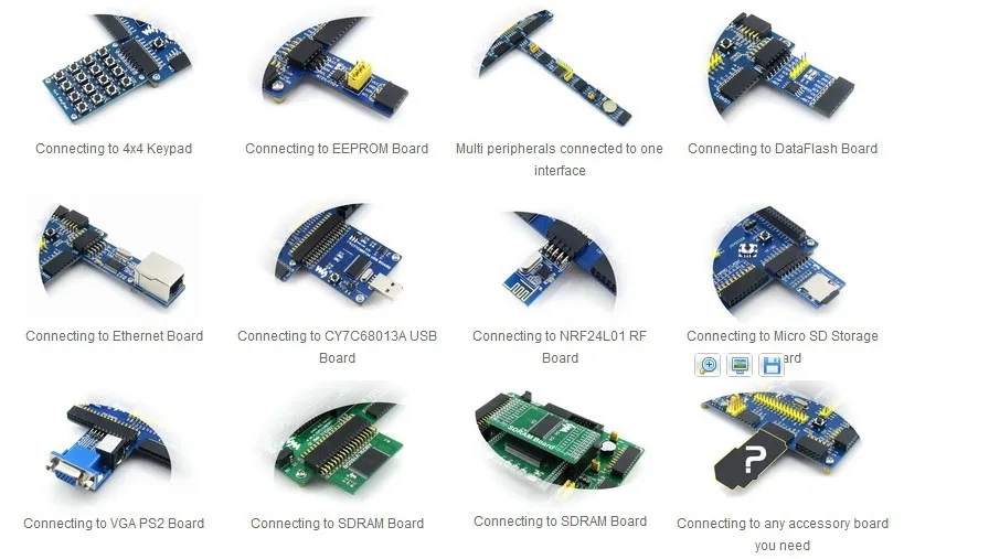Расширитель FPGA pins,VCC, GND и все порты ввода/вывода доступны на разъемах расширения для дальнейшего расширения