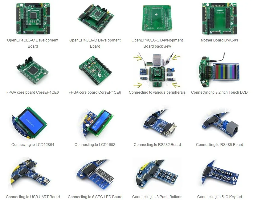 ПримерыOpenEP4CE6-C FPGA development board поставляется с различными примерами кодов для поддерживаемых периферийных устройств, которые позволяют быстро начать разработку собственного приложения.