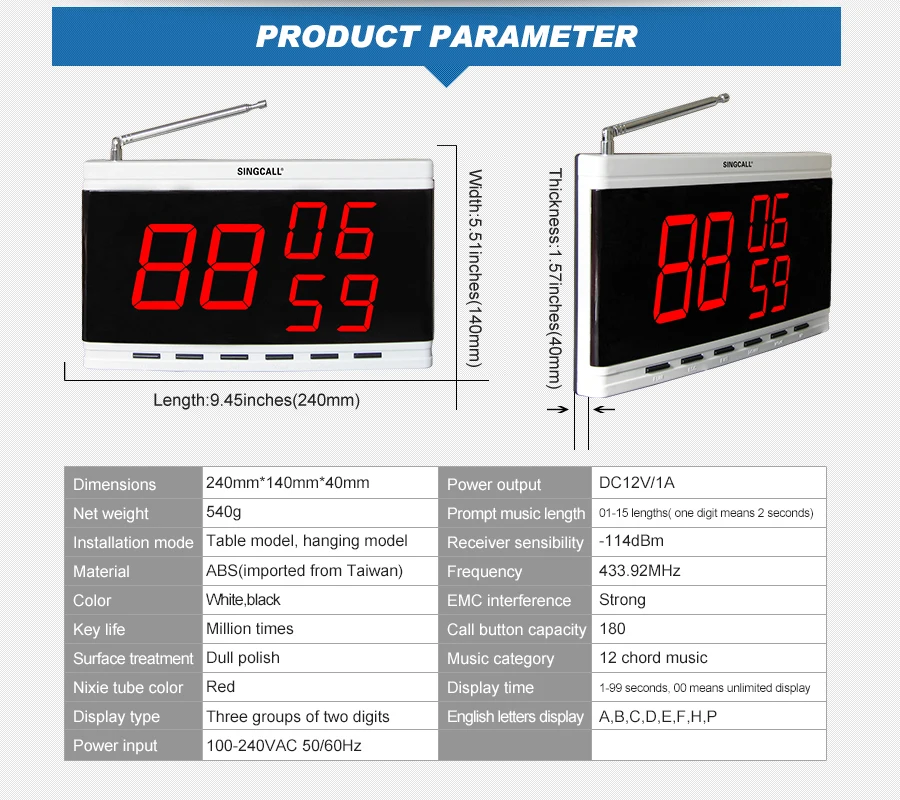 Вы когда-нибудь в ресторане, здесь вы готовы принять ваш заказ, но вы не можете найти в любом месте официанта или без ожидания? Система вызова беспроводного оператора или сервера может решить вашу проблему.Беспроводная Жидкостная система широко используется в области обслуживания. В комплект входит Кнопка использования часов для гостей и приемник сигнала с помощью официанта. Когда гость нуждается в какой услуге, он или она просто нажмите кнопку рядом с ним, его или ее номер стола будет отображаться в музыки или смотреть пейджер предупреждающий голос. Поэтому официант может обеспечить очень своевременное обслуживание. Добро пожаловать на выбор системы вызова ресторана.