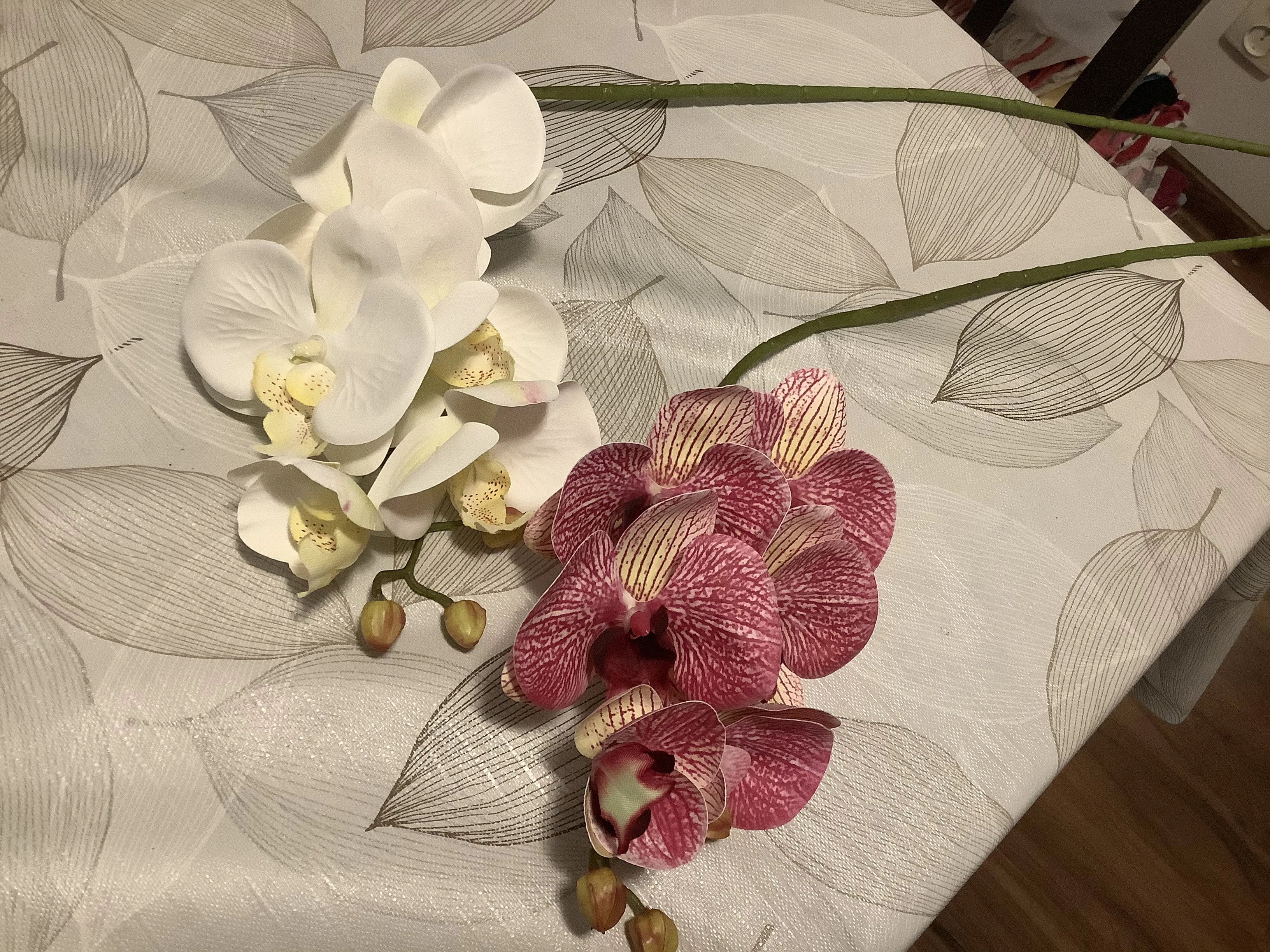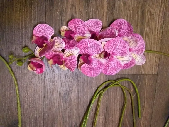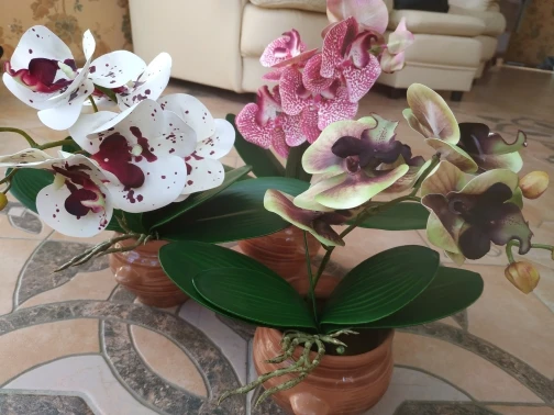 Хорошие орхидеи! Качество достойное, смотрятся очень симпатично ( не дешёвая ткань). Пришли очень помятыми, но проблема решилась за 5мин. с помощью фена ( распремляются идеально). Цветы достаточно крупные, как по мне можно и помельче, тогда точно от натуральных бы не отличить. Доставка до Москвы около месяца.