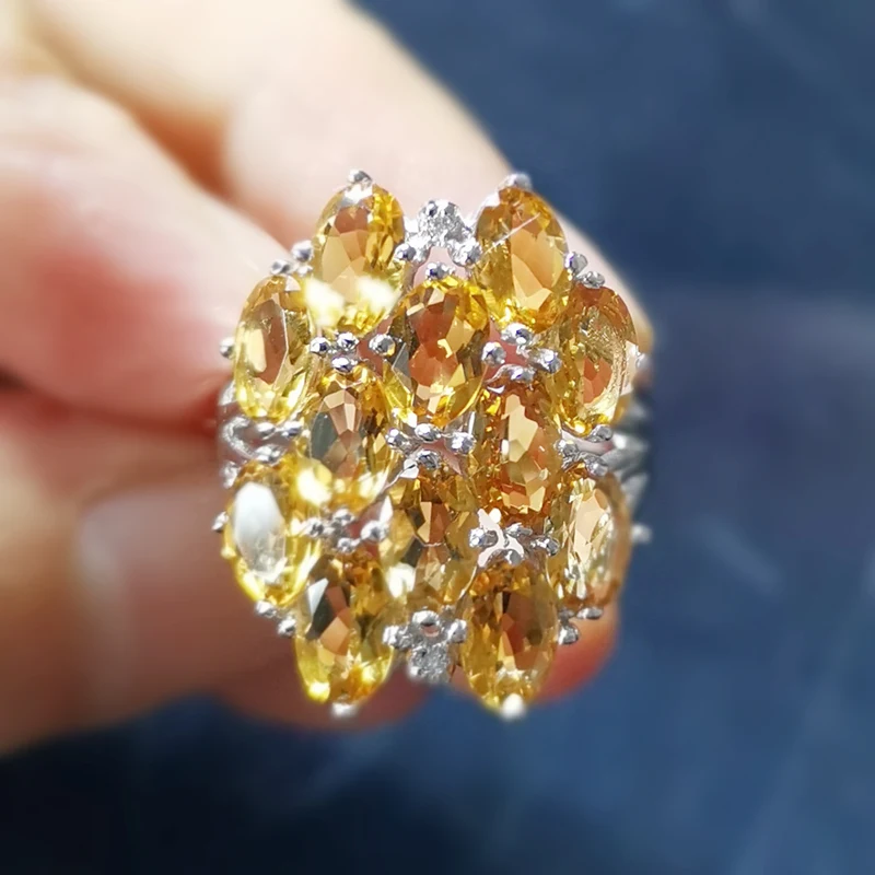 За ювелирные изделия Бесплатная доставка роскошное кольцо из натурального цитрина кольца из серебра 925 пробы модные ювелирные изделия карат * 12 шт. драгоценный камень C95806