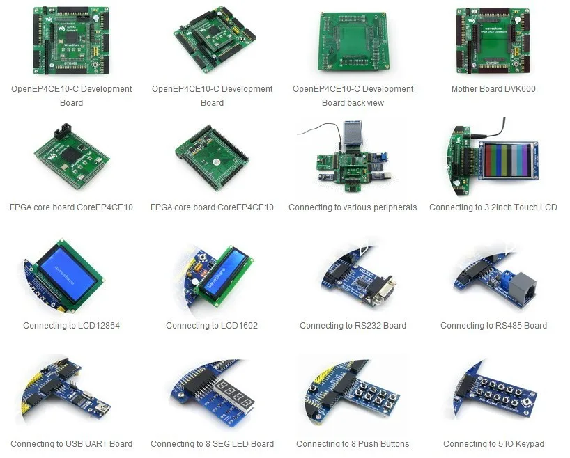 ПримерыOpenEP4CE10-C FPGA development board поставляется с различными примерами кодов для поддерживаемых периферийных устройств, которые позволяют быстро начать разработку собственного приложения.