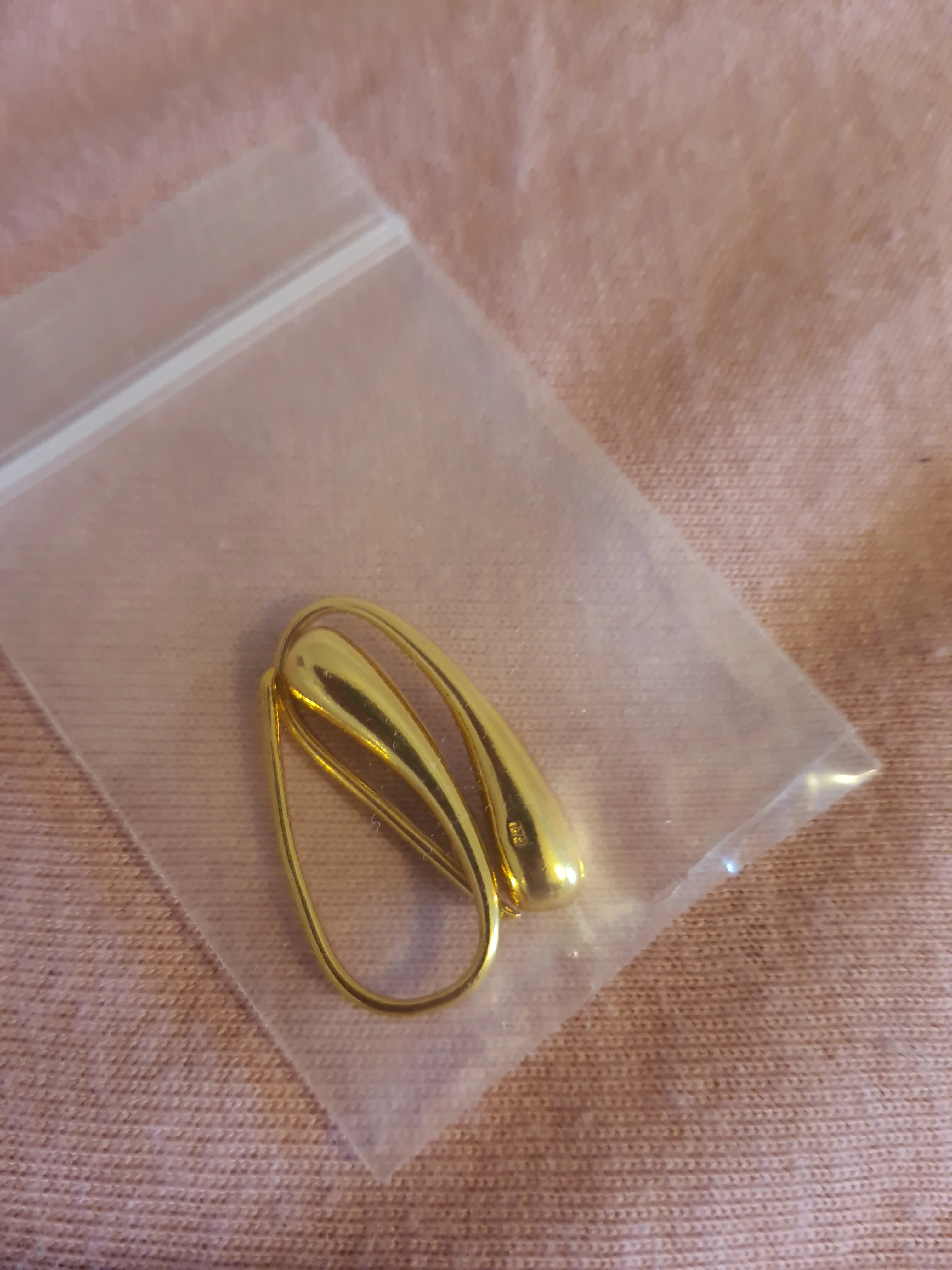 Классные гладкие капельки (в длину серьги 2,5 см)! Но для меня толстоваты "крючки" - вдеваются с большим трудом. И проба стоит странно - прямо на видном месте, сбоку каждой серьги. В Москву посылка пришла недели за 3.