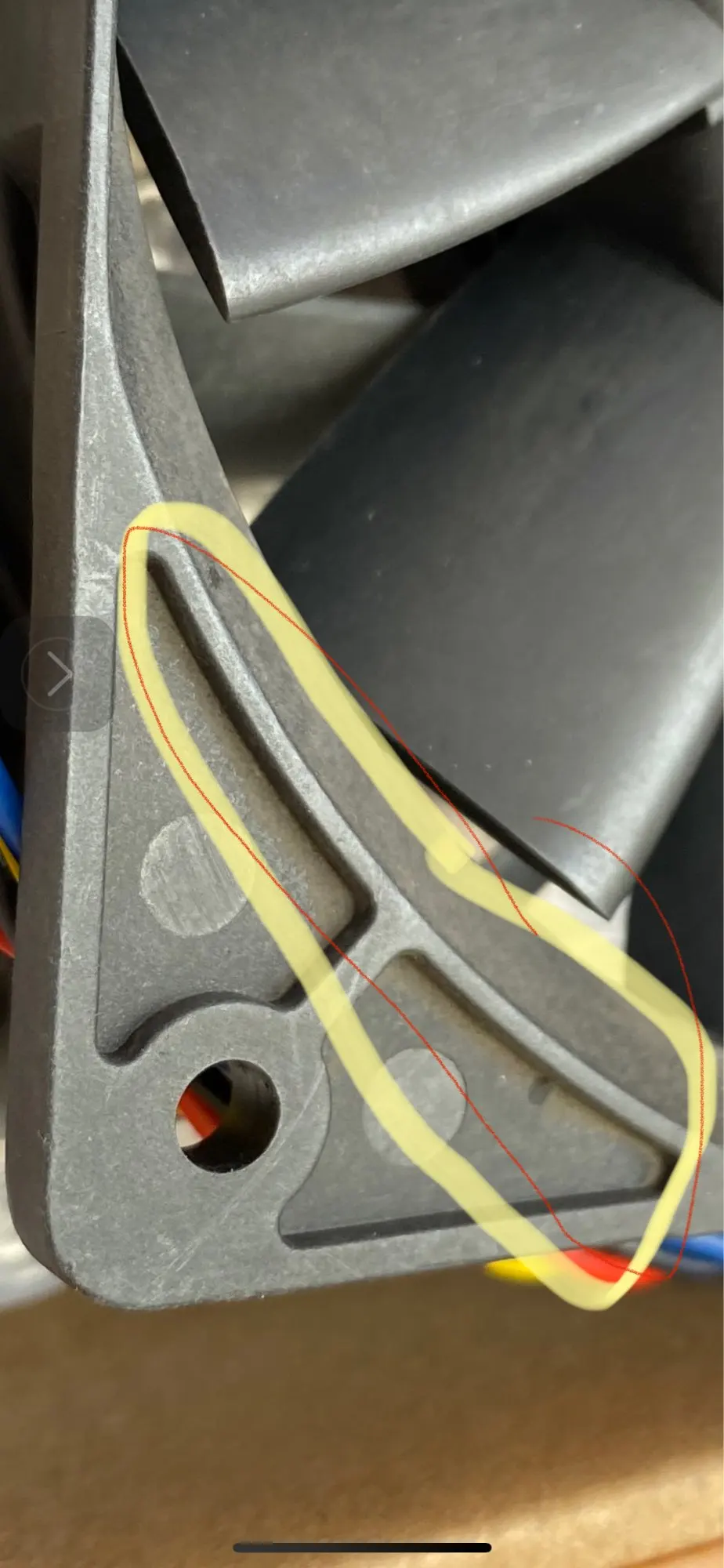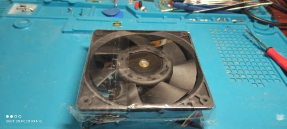 Вентилятор с настолько мощным потоком, что направленный вниз - парит над плоской поверхностью. Признаков того что этот вентилятор б/у я не нашел. Единственное важно - продавец заботливо распаял этот вентилятор с штатных проводов на 4-х пиновый стандартный для материнок разъем, но, я настоятельно не рекомендую подключать этот вентилятор только в материнку(велик шанс спалить выход на материнке). А если очень надо именно к компу подключить, то, как минимум, красный и черный провода надо брать прямо с разъема блока питания.