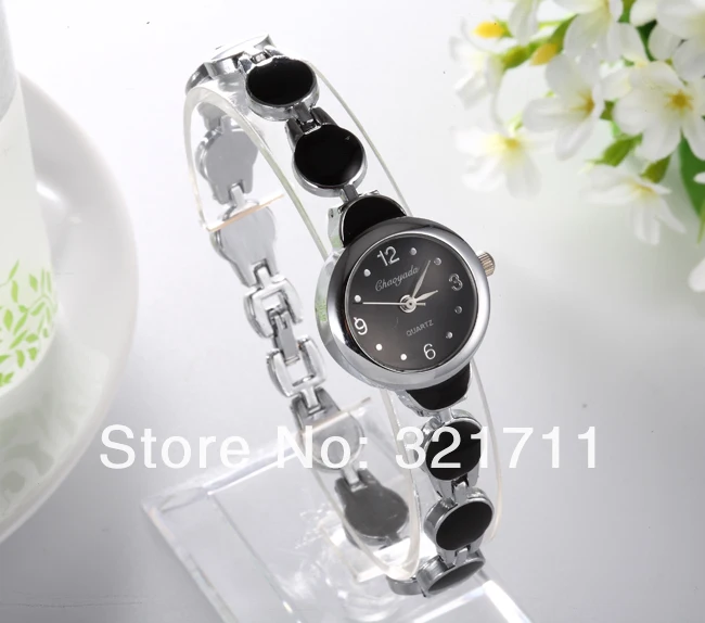 Женские часы из нержавеющей стали, роскошные женские модные часы с круглым циферблатом, красивый черный браслет, кварцевые часы высокого качества