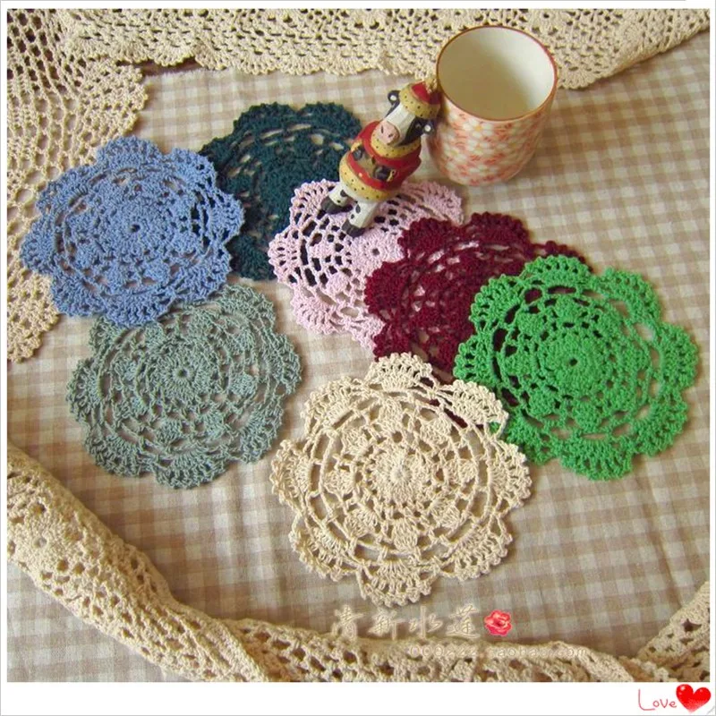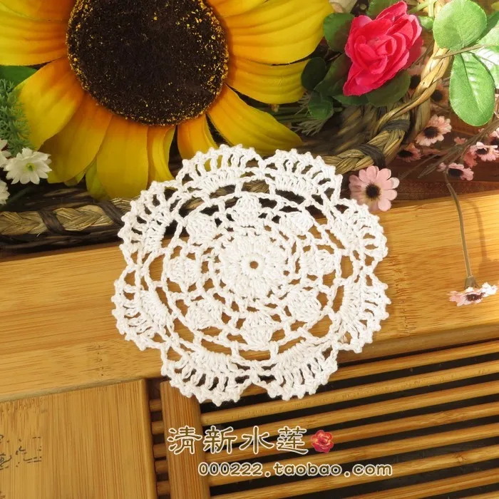 Бесплатная доставка Хлопок Вязание крючком кружева цветы войлочная ткань doilies ваза коврик реквизит декоративная подушка 20 см круглый 5 фото/лот