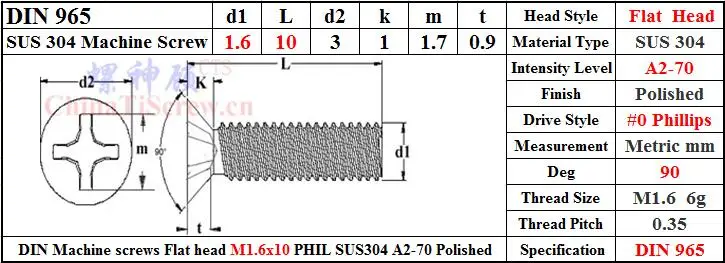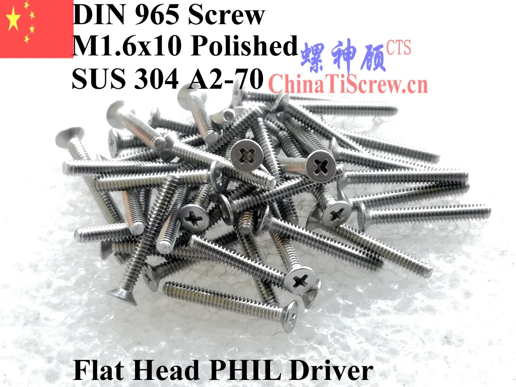 DIN 965 нержавеющая сталь M1.6 винт M1.6x2 M1.6x2.3 M1.6x2.5 M1.6x3 M1.6x4 M1.6x5 M1.6x6 M1.6x8 M1.6x10 плоская головка драйвер
