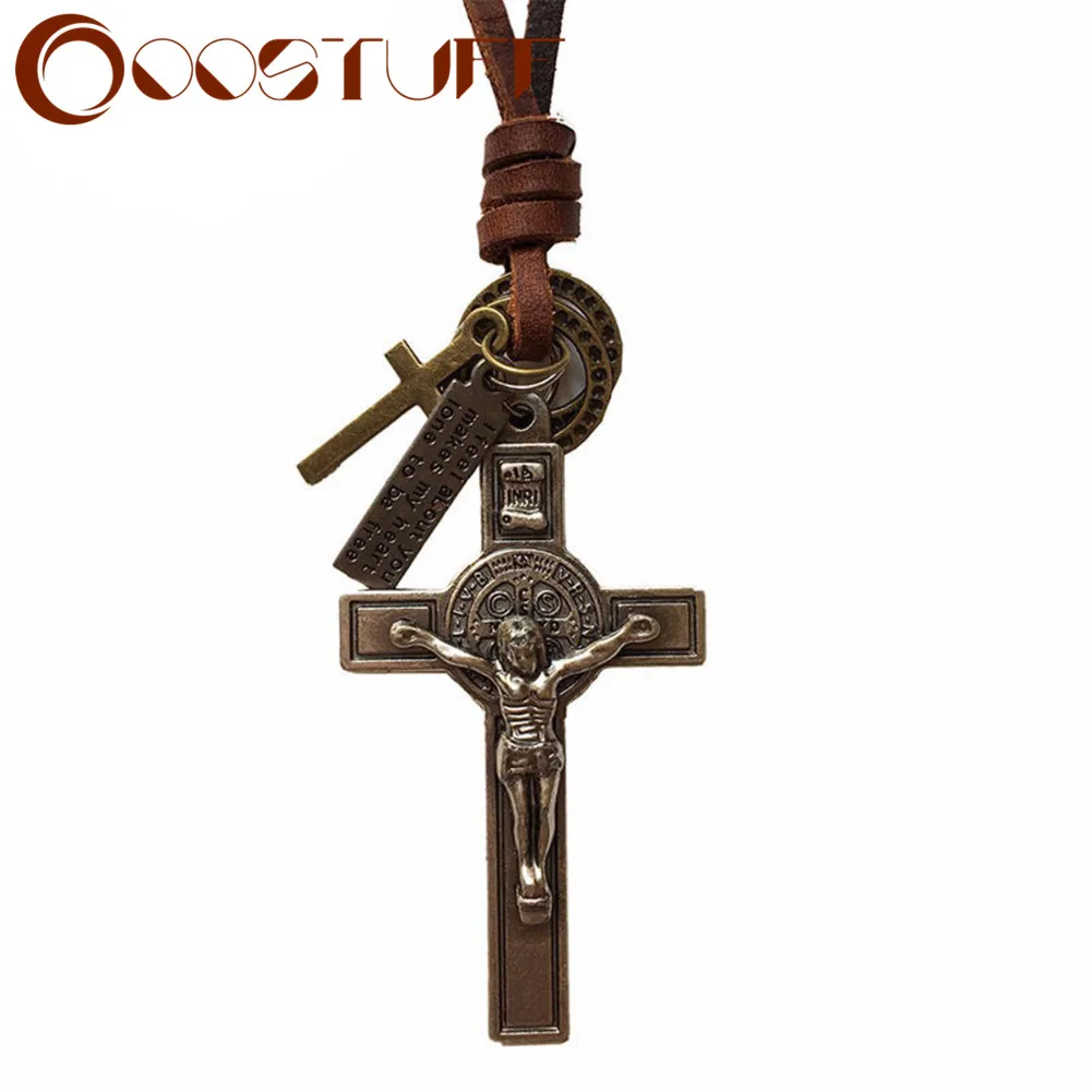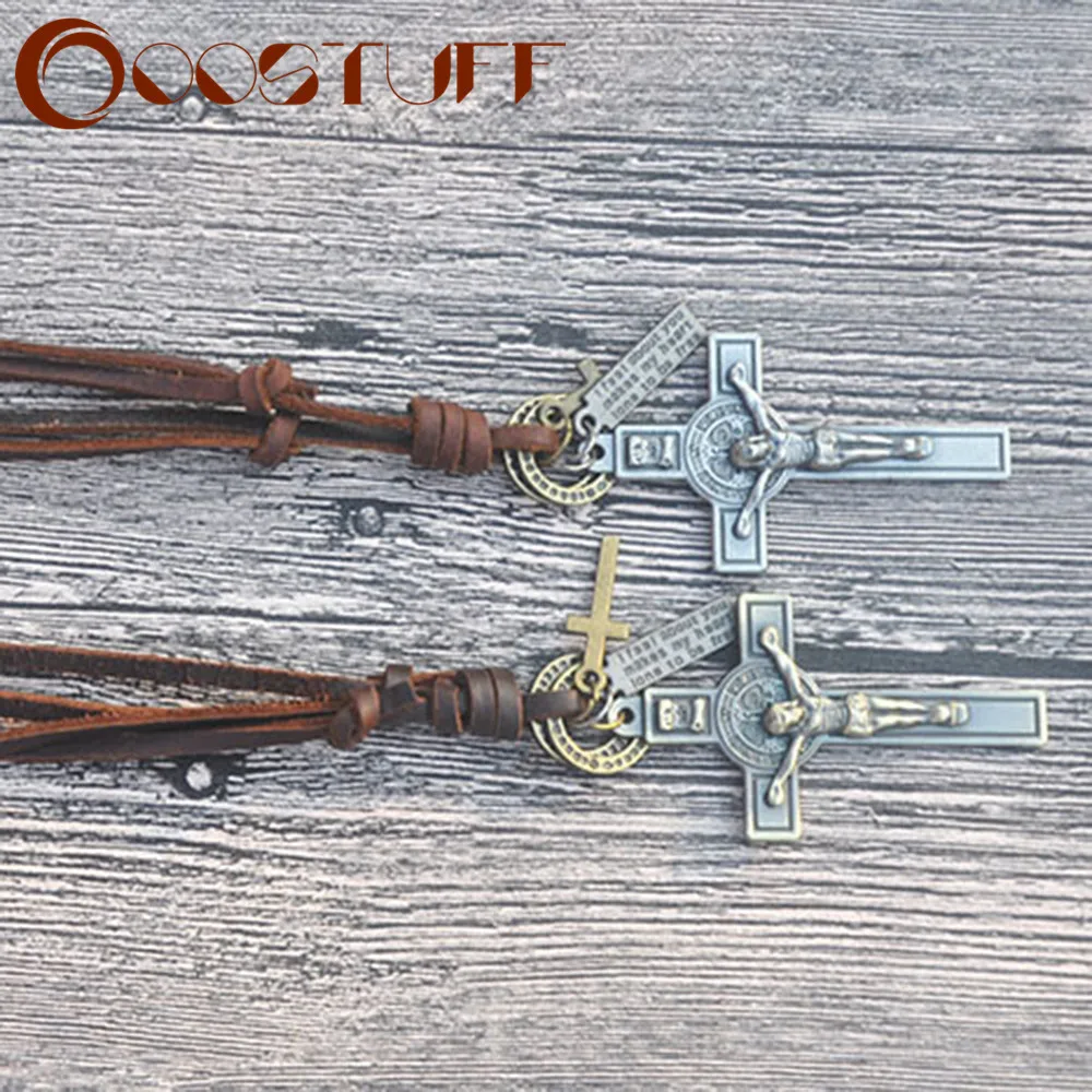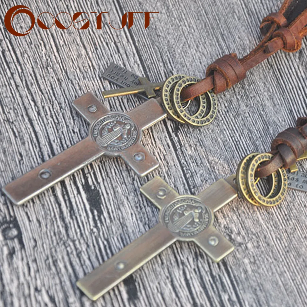2017 мужчин ювелирные изделия основа для кулонов и ожерелья Kolye, панк кожи веревку колье ожерелье колье ошейник, Иисус крест ожерелье женские