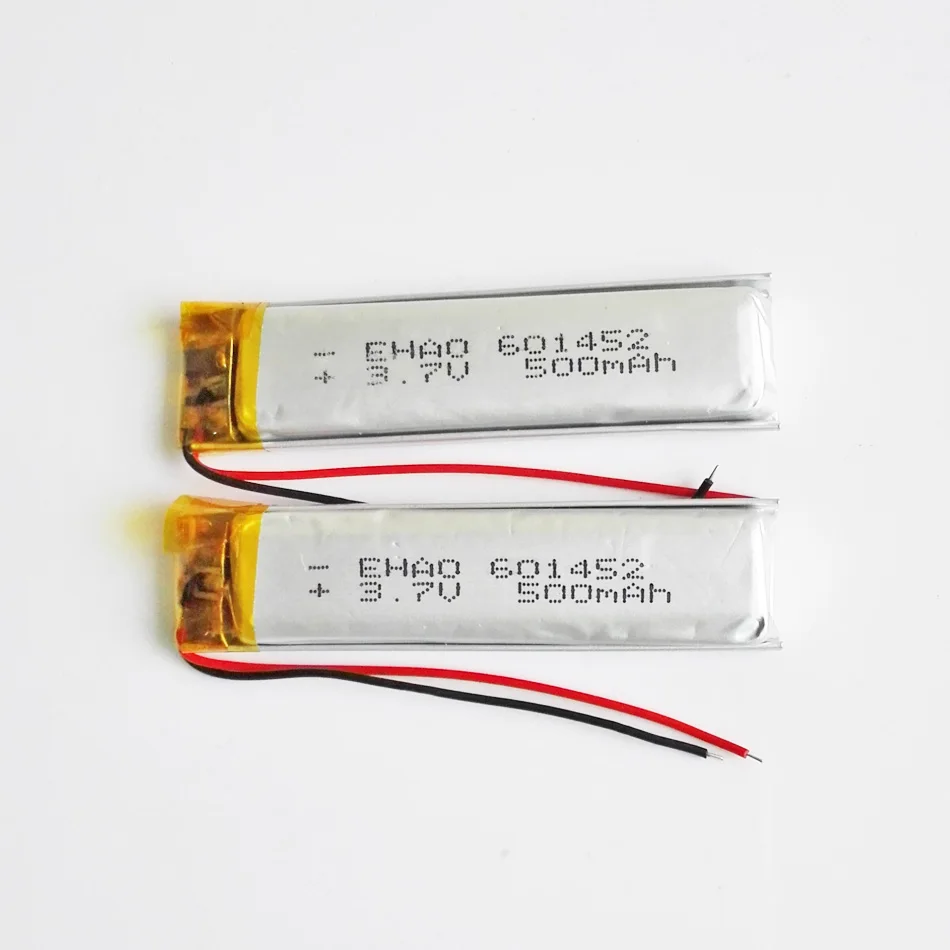 Посылка включает:1 х шт 3,7 в 500 мАч 601452 литиевая полимерная аккумуляторная батарея. 6*14*52 мм