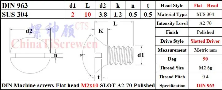 DIN 963 Нержавеющаясталь M2 винты M2x3 M2x4 M2x5 M2x6 M2x8 M2x10 A2-70 полированная по ограничению на использование опасных материалов в производстве 100 шт