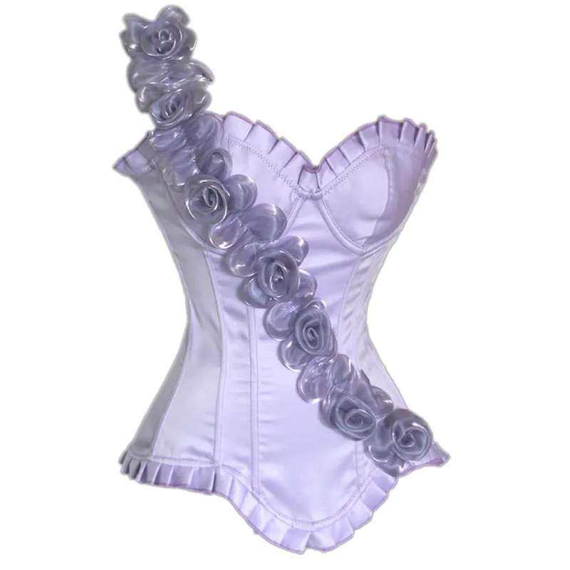 Белые сексуальные корсеты и бюстье, топы для женщин, стимпанк, с косточками, на шнуровке, с одним плечом, с цветочным рисунком, боди, формирователь, Burlesque, корсеты