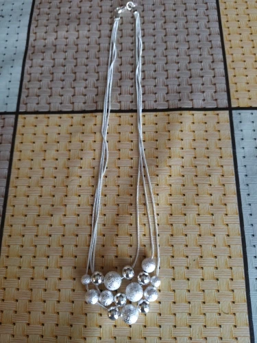 Продукт соответствует описанию. На нем есть бирка из стерлингового серебра 925 пробы, но я не уверен, что это настоящее серебро. Ожерелье и бусы блестящие, не матовые. Я очень доволен продуктом и быстрой доставкой (менее 2 месяцев).