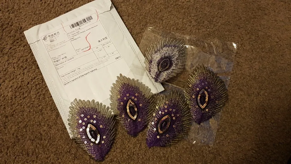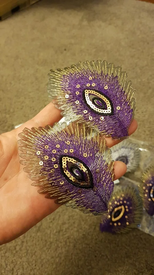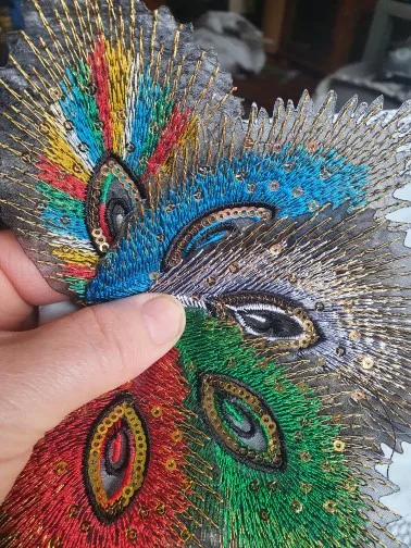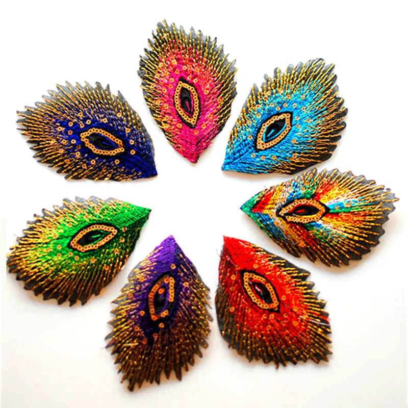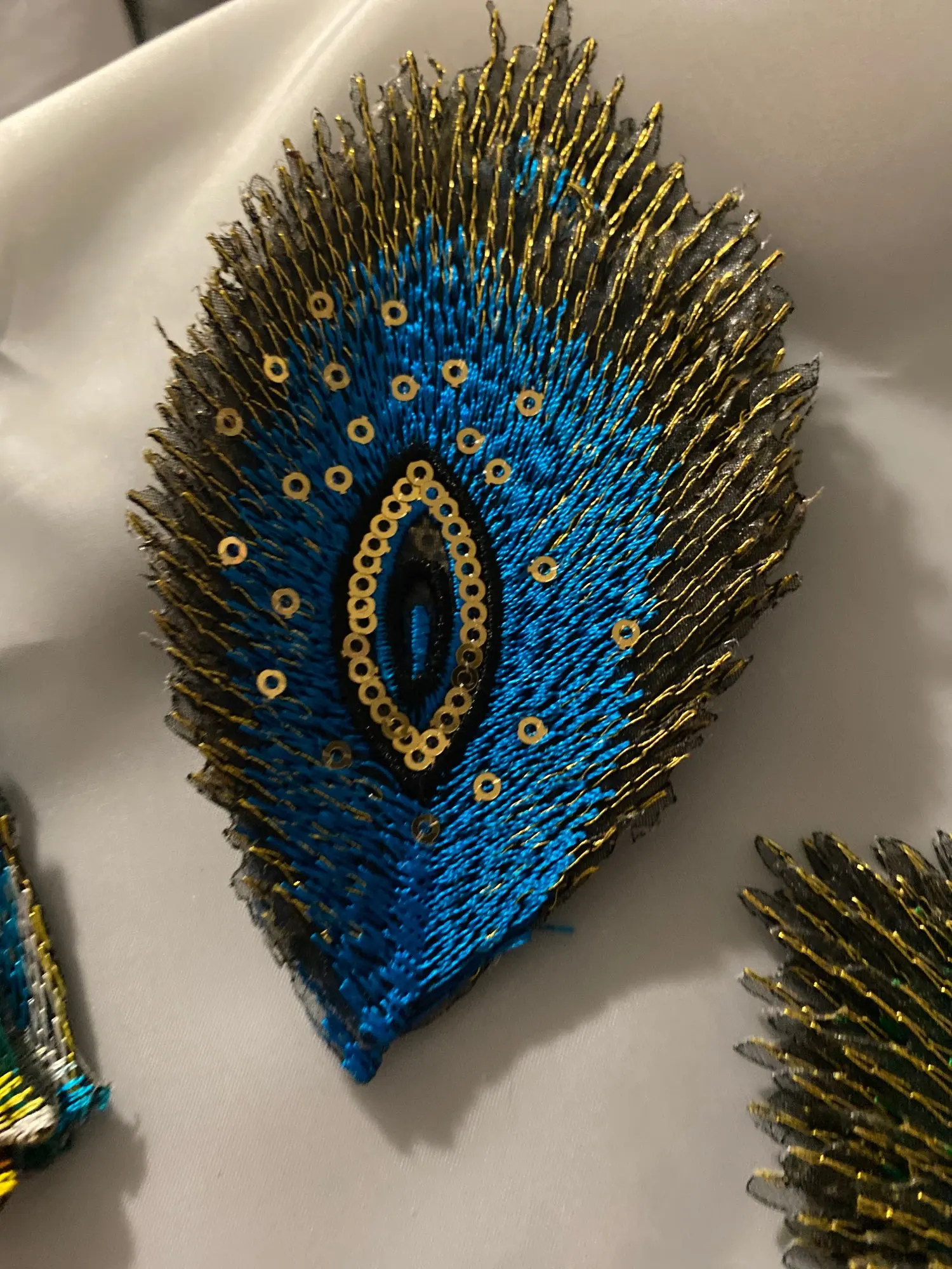 Нашивки с вышивкой павлиньим хвостом 10,5*7 см, 5 шт.