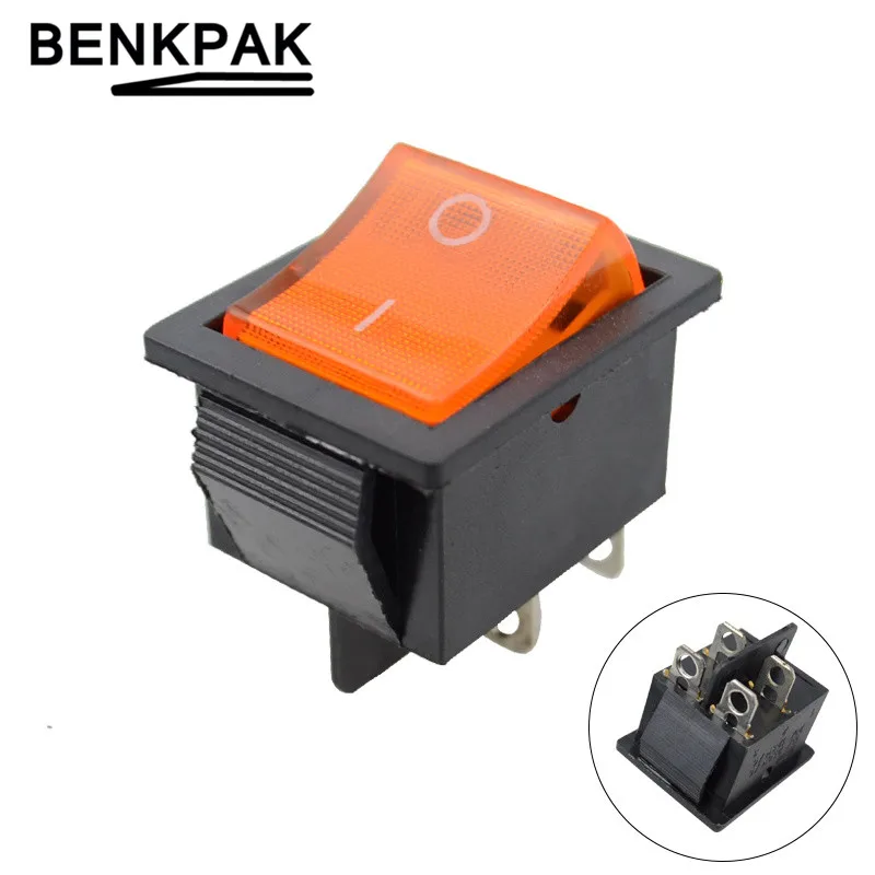 Мини-кулисный переключатель KCD4 с подсветкой, лодочный переключатель, 4 контакта, 220 В ВКЛ.ВЫКЛ.