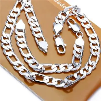 S086 оптовая продажа, набор ювелирных изделий серебряного цвета, модный набор ювелирных изделий 12 мм плоский набор ювелирных изделий Фигаро