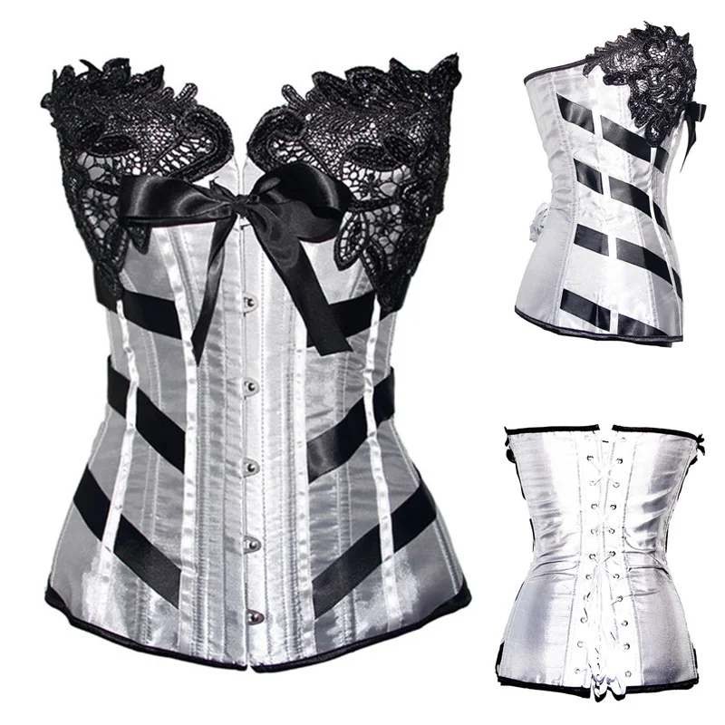 Новинка, черный и белый сексуальный женский атласный корсет без бретелек на шнуровке, бюстье, кружевной топ, кружевной топ, корсет